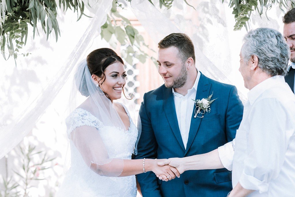 It took us a while to find someone to help us planning from a different country but thankfully, locals recommended us Claire at Lefkas Weddings. The whole journey was exciting, fun, organised and surprisingly calm. We knew that we wanted a venue with history rather than a beach wedding and Claire sent us numerous ideas and then she mentioned her favourite building was the Library building and it had a large garden that could be perfect for us. We saw the pictures and we truly felt is ‘The One’ it had everything we were looking for. It was a tense wait whilst she applied for permission as the garden had not been used previously for a ceremony and we were so excited when we received the yes to go ahead!