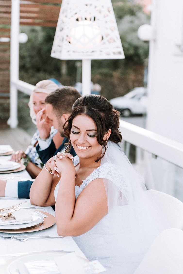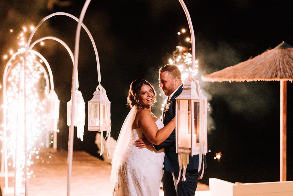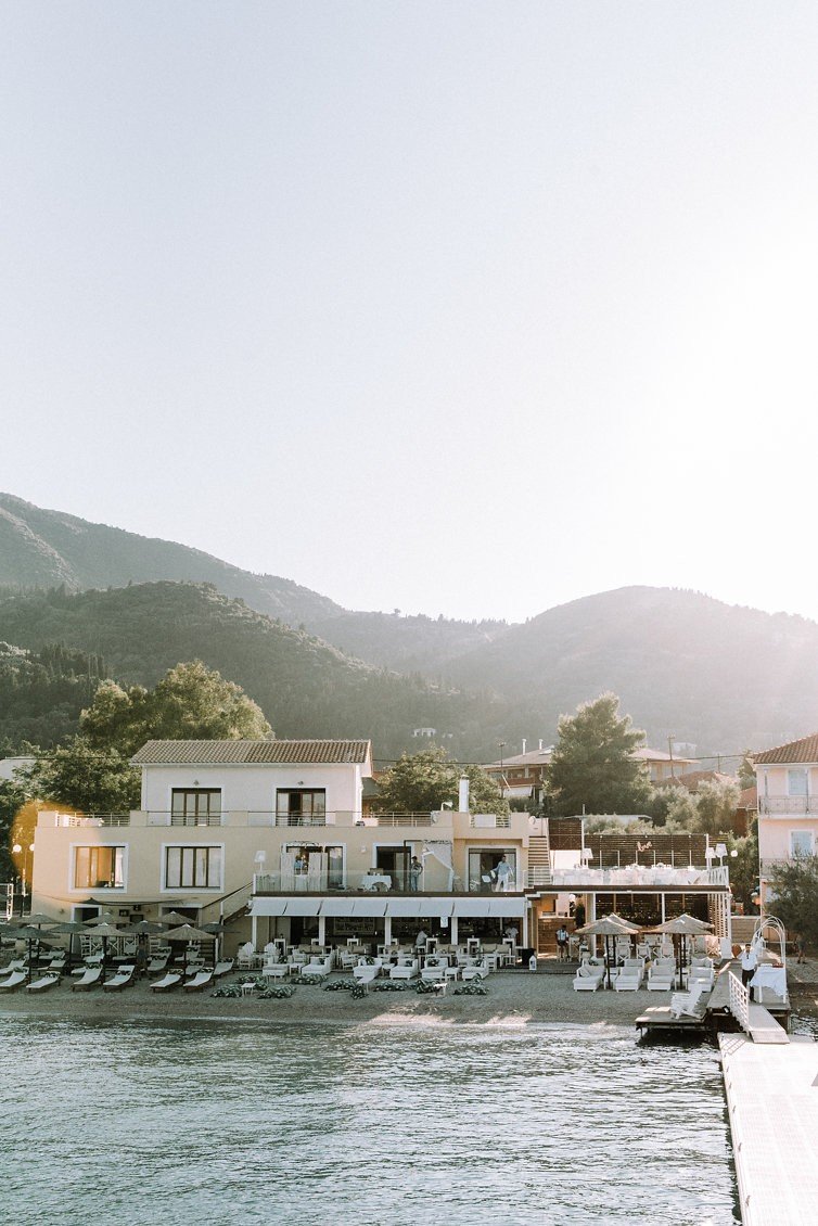 Our ‘Big Day’ arrived and it was perfect from sunrise to sunset! Our ceremony at the Library was surrounded by beautiful rustic architecture; we choose a civil ceremony with a Christian blessing with readings and a hymn. That was truly special for us as it was a personal touch from both our upbringings. We had a stunning boat cruise to take us to the ceremony in Lefkada Town as well as back to the reception venue – our guests were really impressed with that! The food and drinks at NV beach bar were amazing, topped off with the breath-taking backdrop of the sun setting over the mountains. We can’t put in to words how magical it was, and we will never ever forget how we felt that day, nor how we feel in Lefkas. We cannot wait to visit for years to come, treasuring this perfect day in our lives. Thank you to everyone that made it a dream come true.”