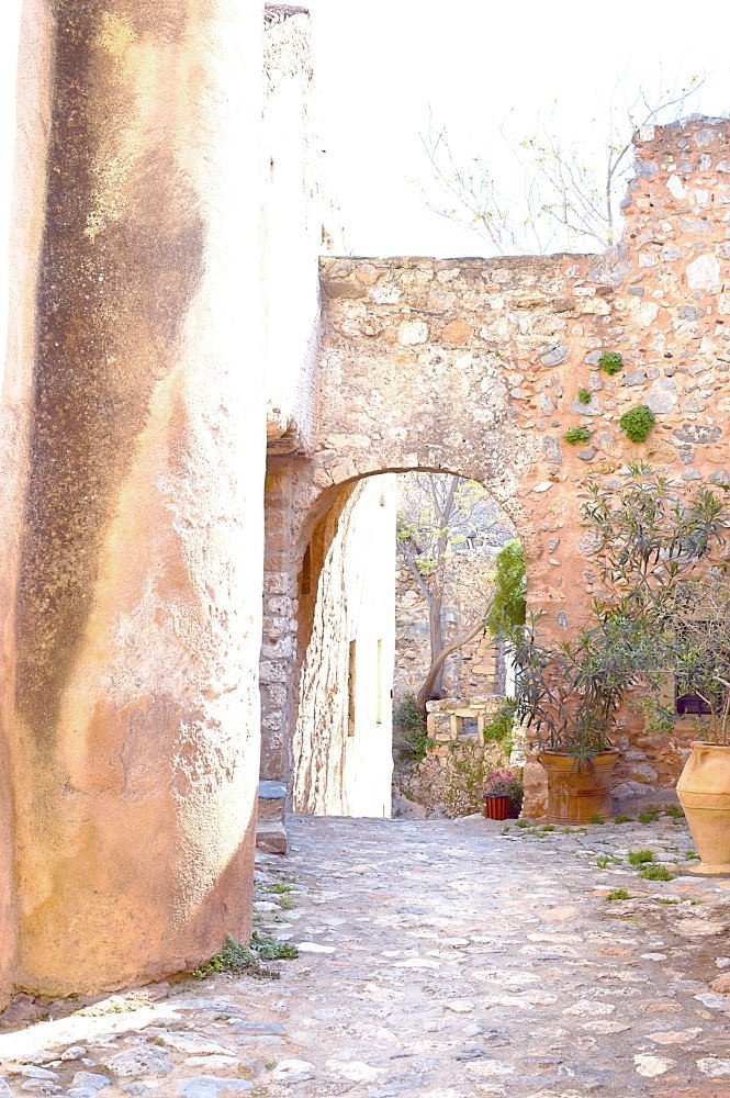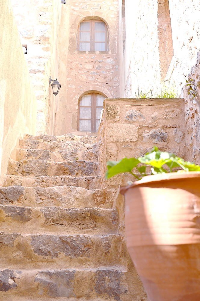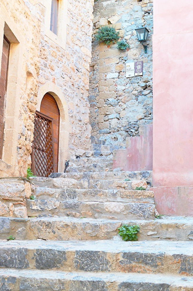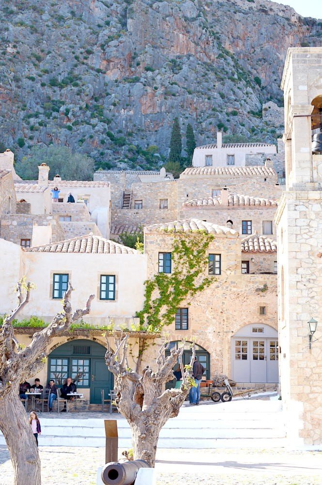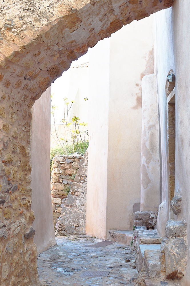 While the famous white houses of Cyclades are impressive, in Monemvasia, you won’t find a single white house in sight. The town is full of stone, warm yellow and rose colored houses with ceramic roofs. This gives the rustic, Italian/Venetian feel to the whole area, completely different to the usual Greek town. Although, trees and nature are growing from every nook and cranny, we recommend you visit Monemvasia before August, maybe even in May, when everything is green and blossoming.