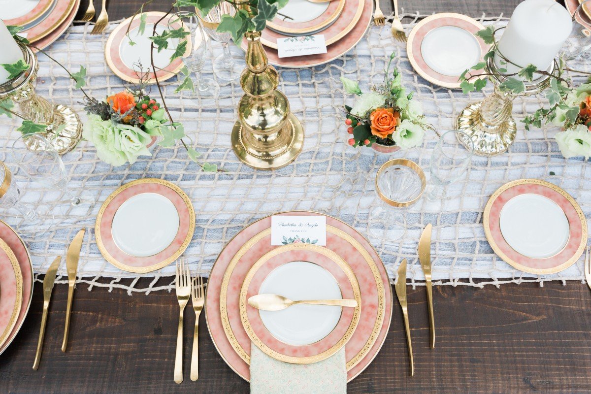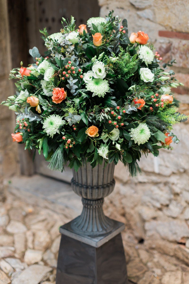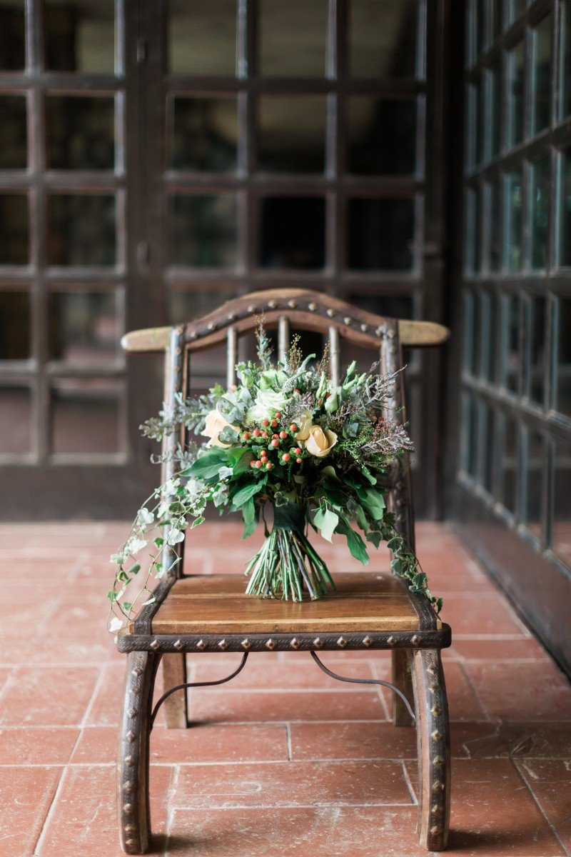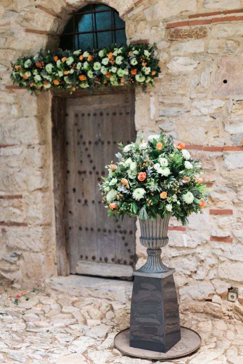 Further more, our wedding table – fully harmonized with the environment – is a visual perfection of a Claude Monet painting. Seems like the perfect combination! These precious flowers and healing herbs of Greek nature with a touch of gold for the perfectionists. As a result, the purity of ivory and orange scented roses & chrysanthemums, take us to this fairytale dream! Matching them with lysianthus, hypericum, eucalyptus and ivy, of course, all prepared and styled by Les Fleuristes.