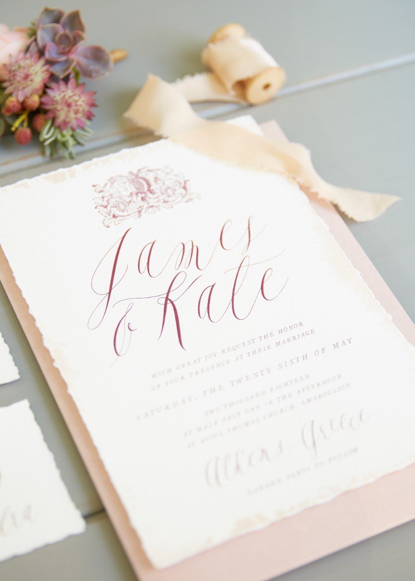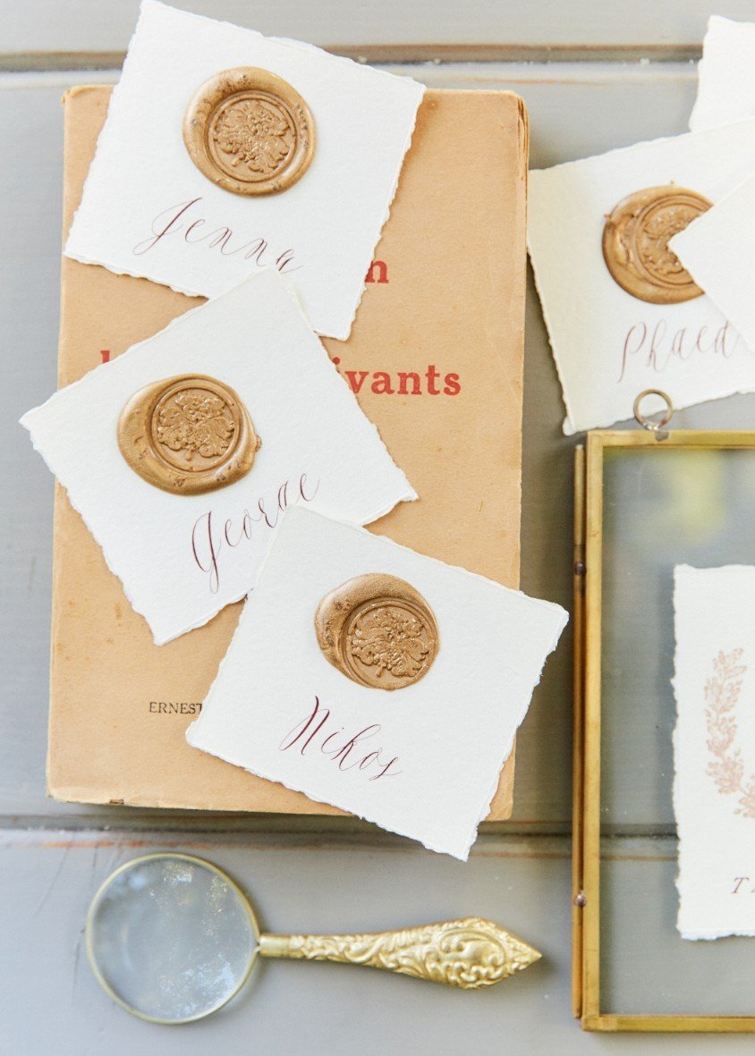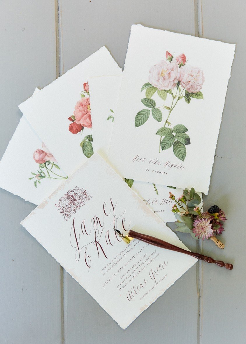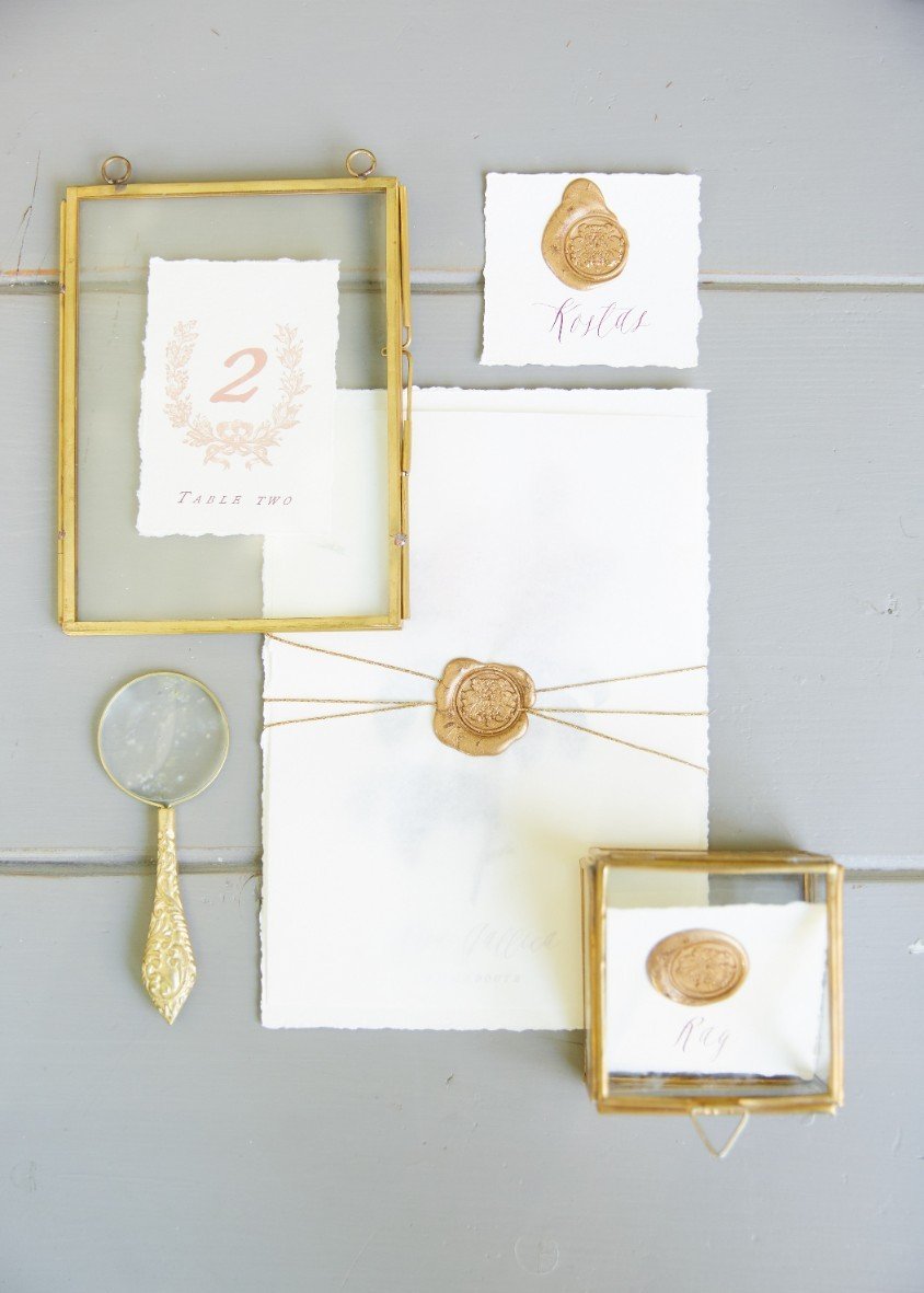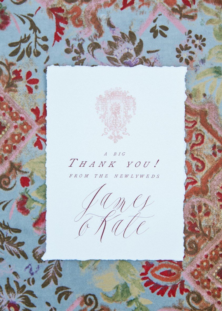 All stationery was designed by Atelier Invitations. Thank-you cards, save the dates, invitations, menus, name cards and even personalised floral cards were all made in peach and burgundy hues with golden accents and wax seals, which correlated with the rest of the theme.