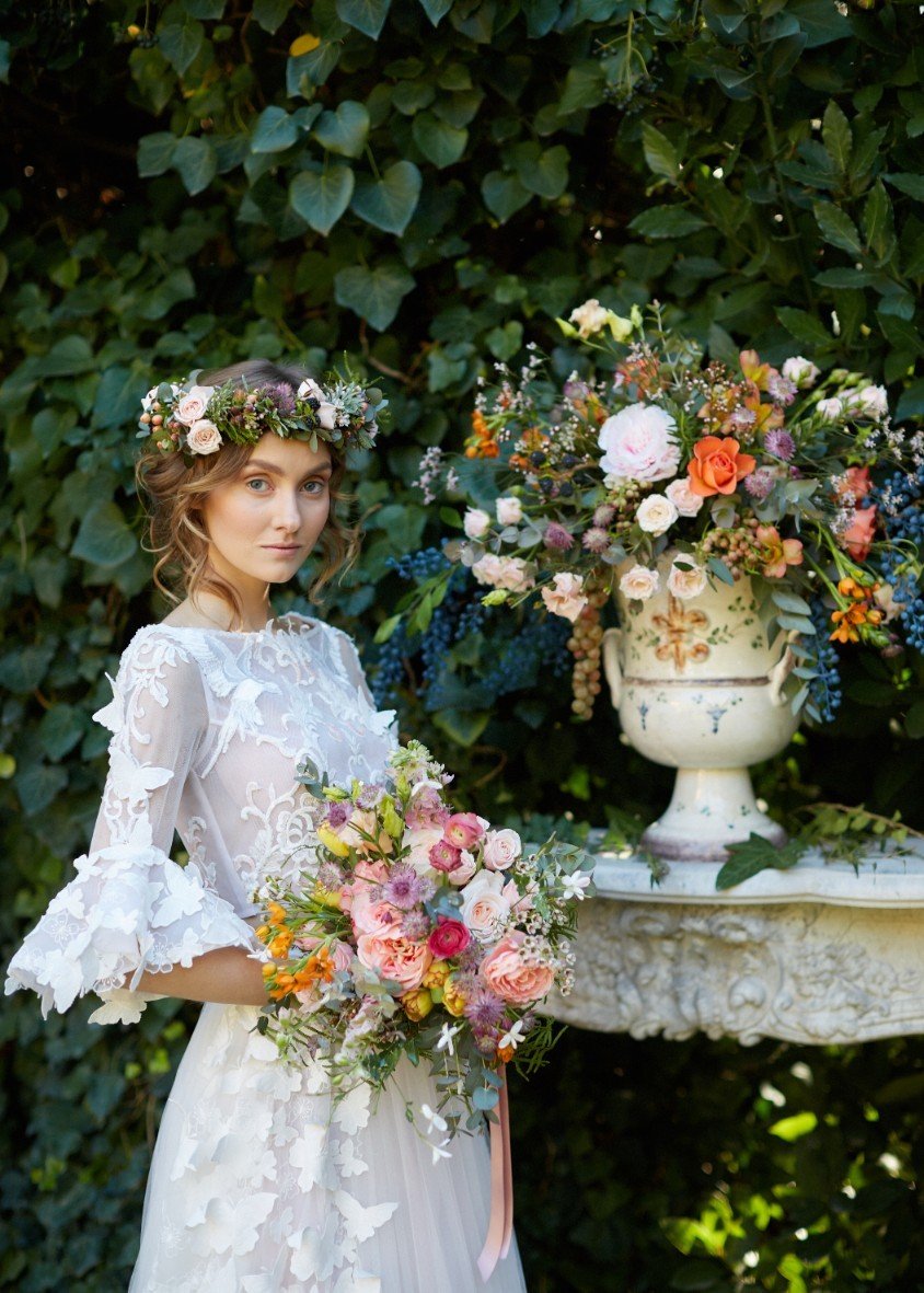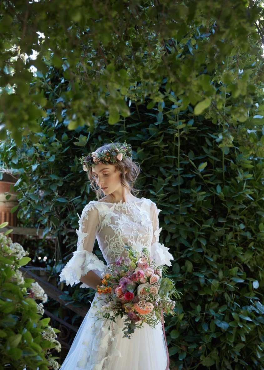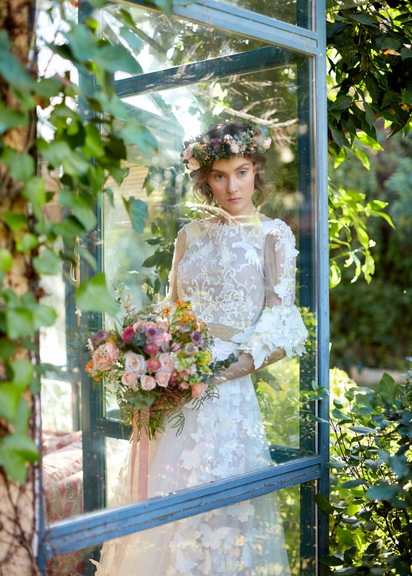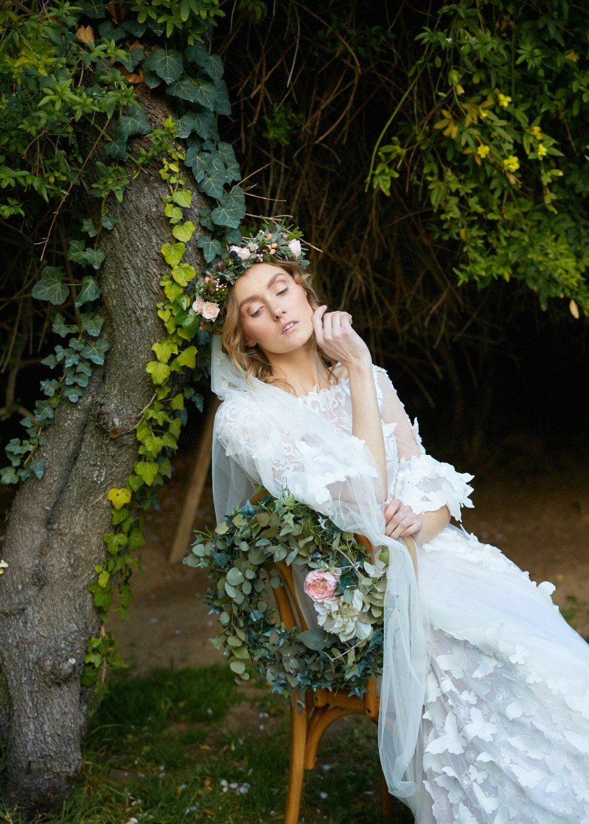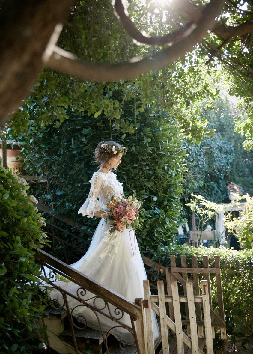 Embrace nature, think of your selected venue. In our case this was a private villa with a true secret backyard, hidden in the middle of the cement jungle in Athens. This venue was perfect for our “Secret Garden” themed editorial with its own glass winter garden gazebo, a picturesque shed, with greenery, orange and almond trees, bushes and flowers fresh in bloom.