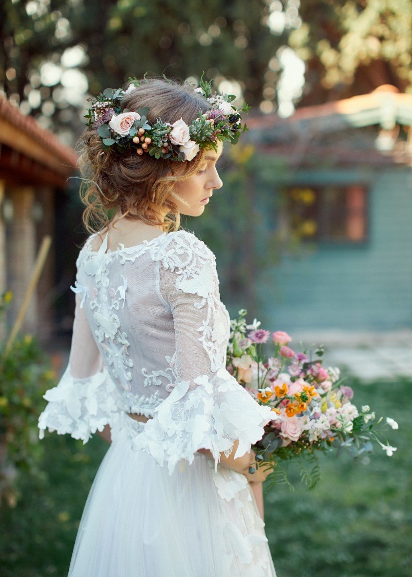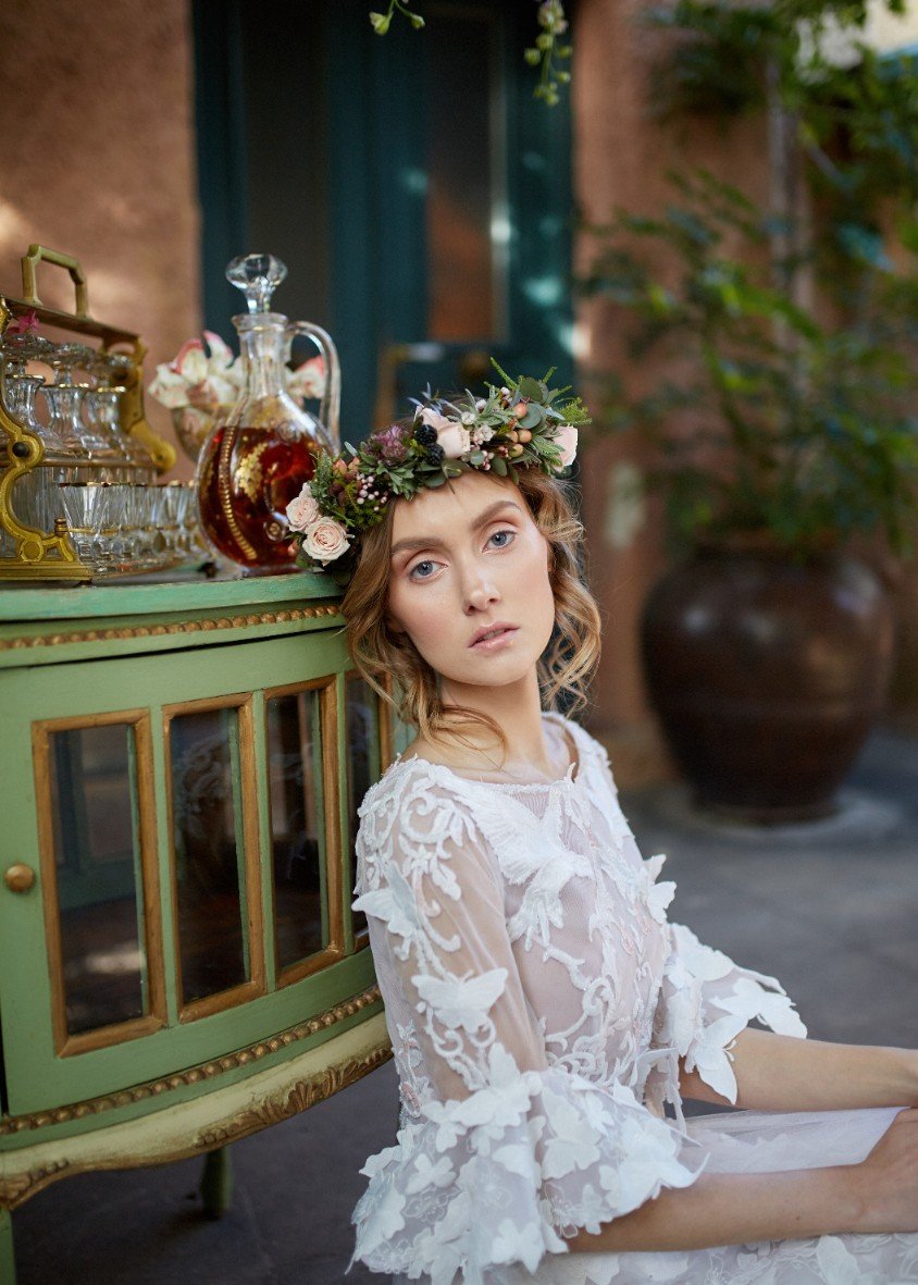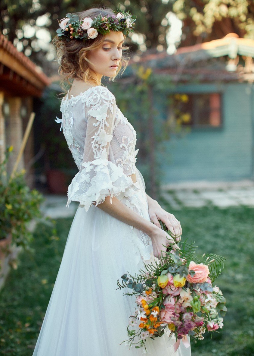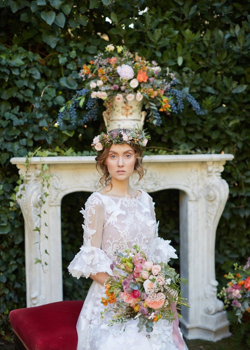 Embrace nature, think of your selected venue. In our case this was a private villa with a true secret backyard, hidden in the middle of the cement jungle in Athens. This venue was perfect for our “Secret Garden” themed editorial with its own glass winter garden gazebo, a picturesque shed, with greenery, orange and almond trees, bushes and flowers fresh in bloom.