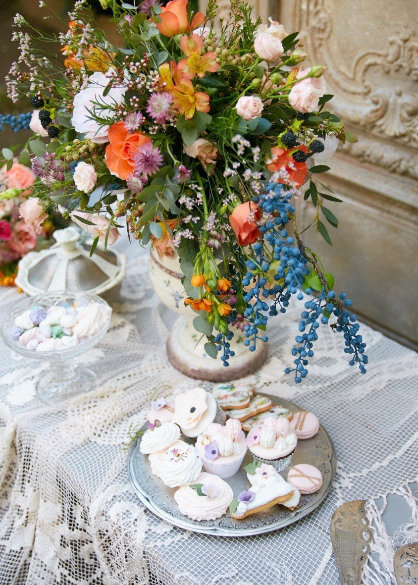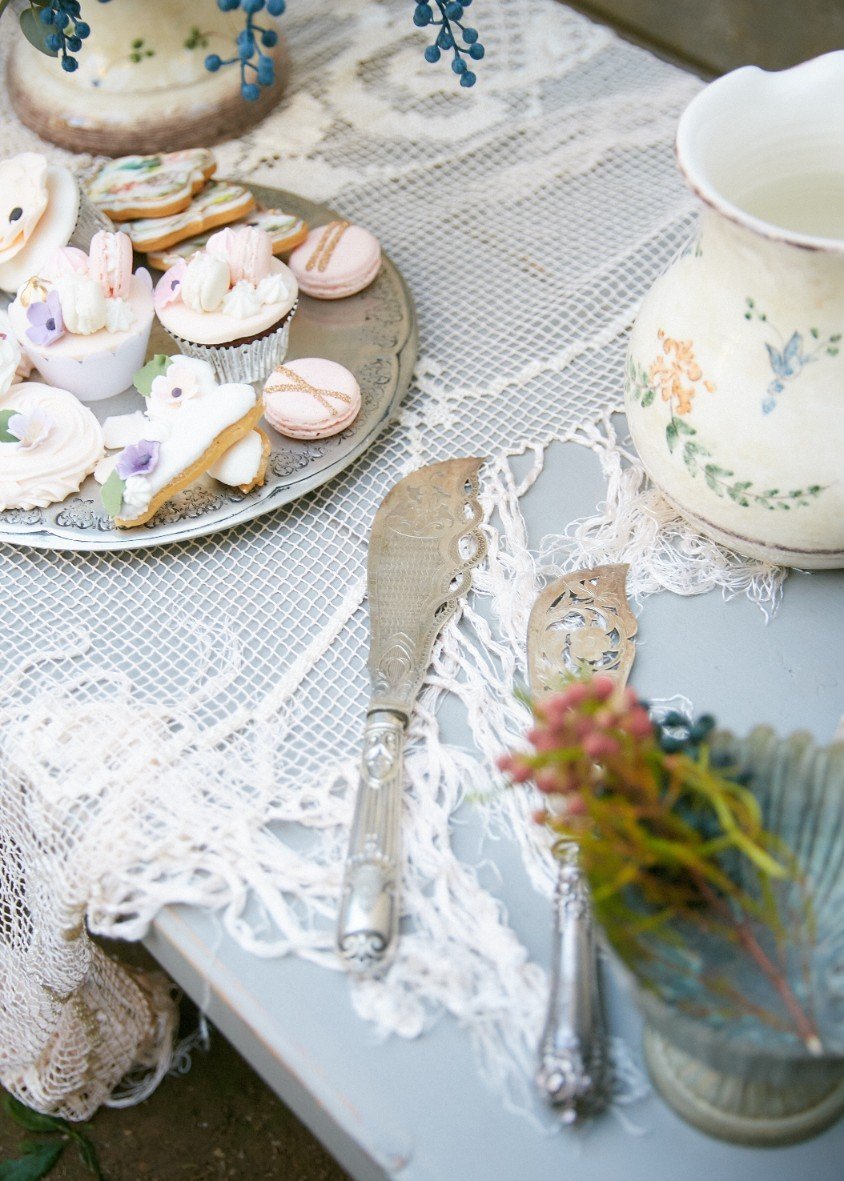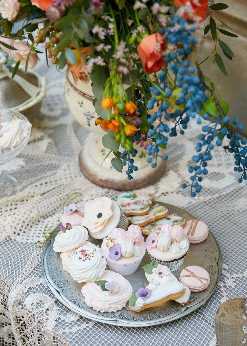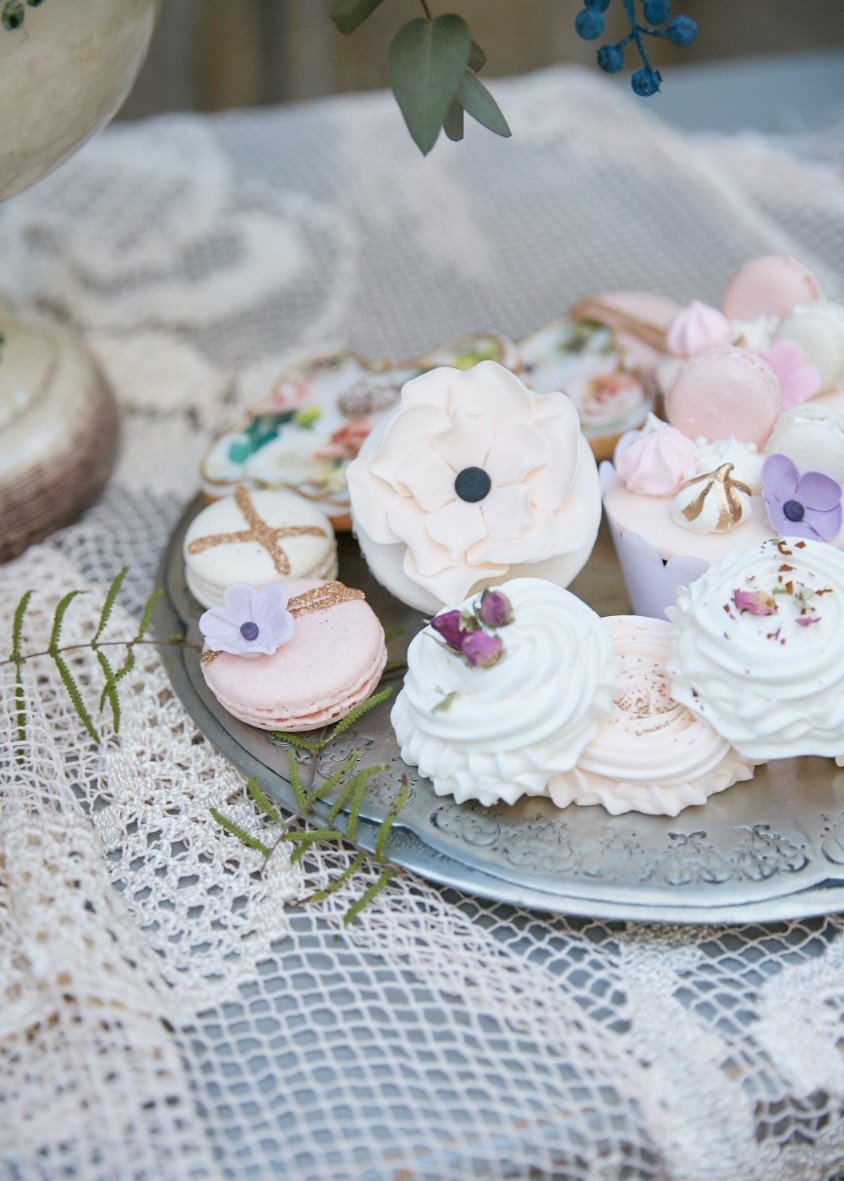 On point with the theme of Springtime and The Secret Garden, our cake was completely covered in sugar art. Maria’s Cakes and Cookies created all the sweets with little details like sugar butterflies, leaves and roses. The rest of the sweets like meringue, cupcakes, macaroons and eclairs were all designed in the same, luxe Tuscan-style theme