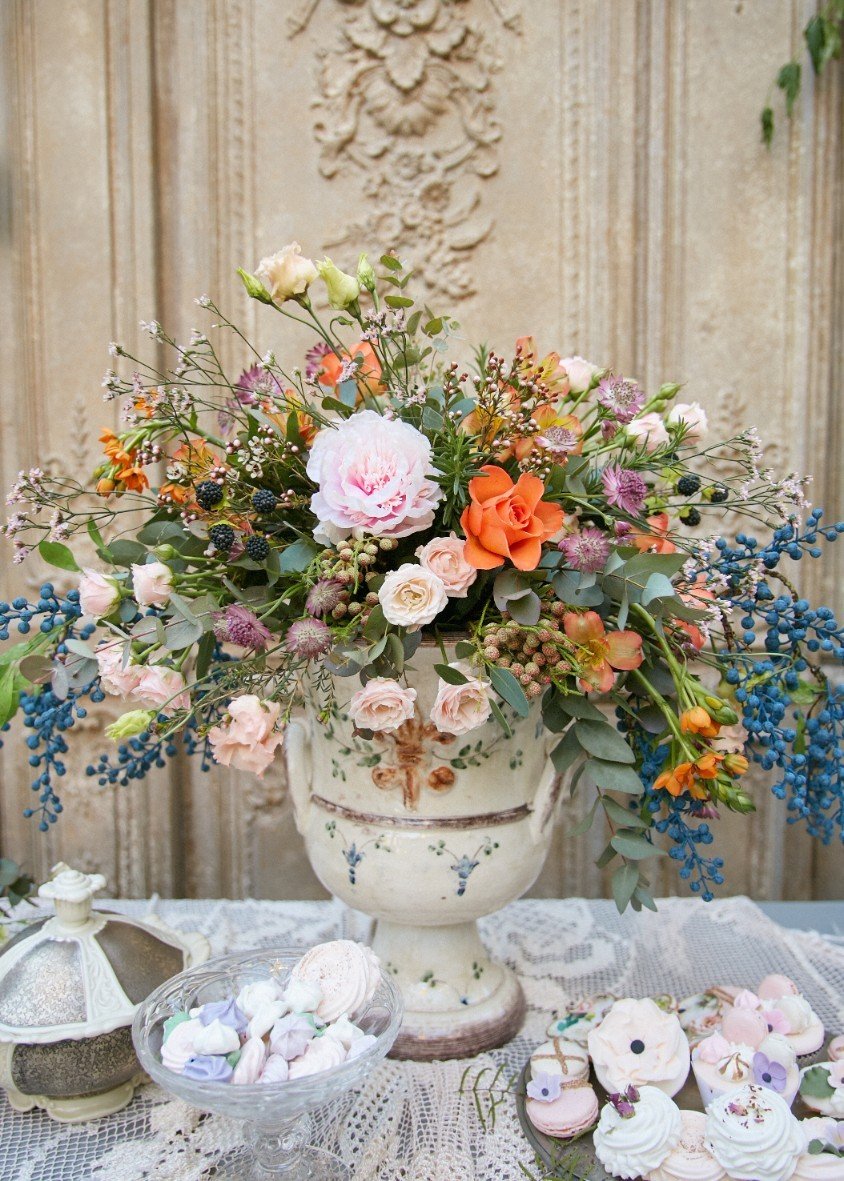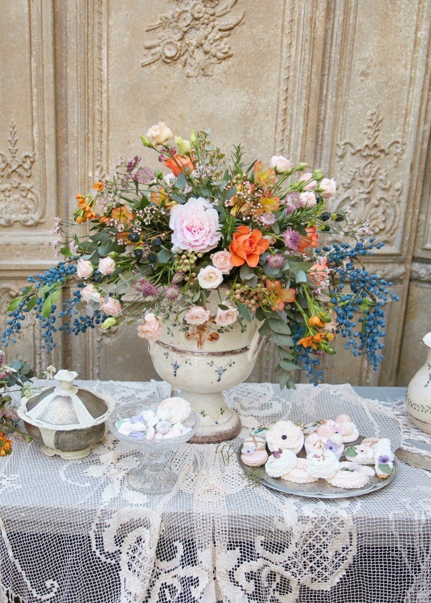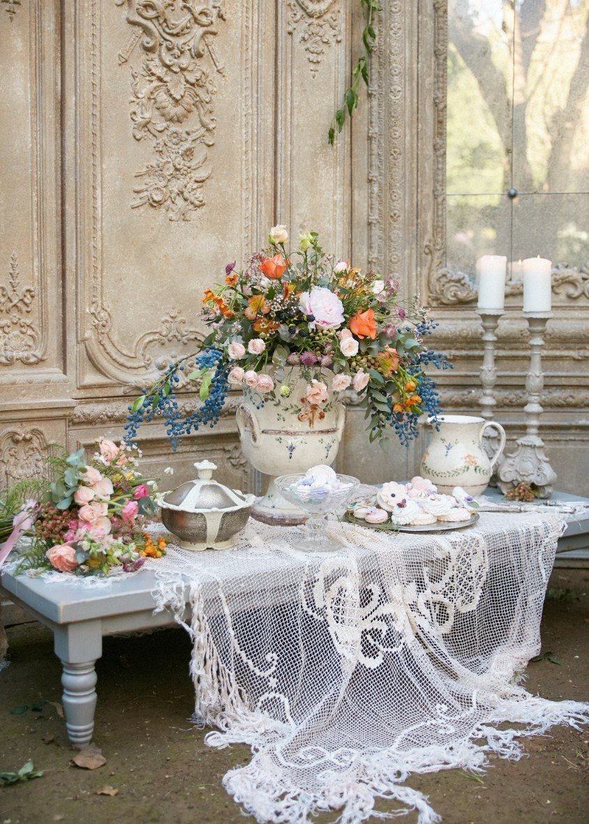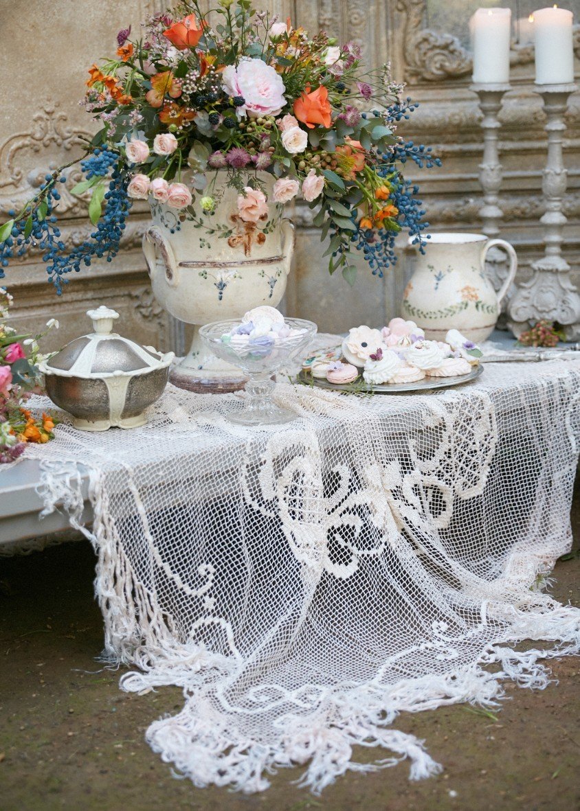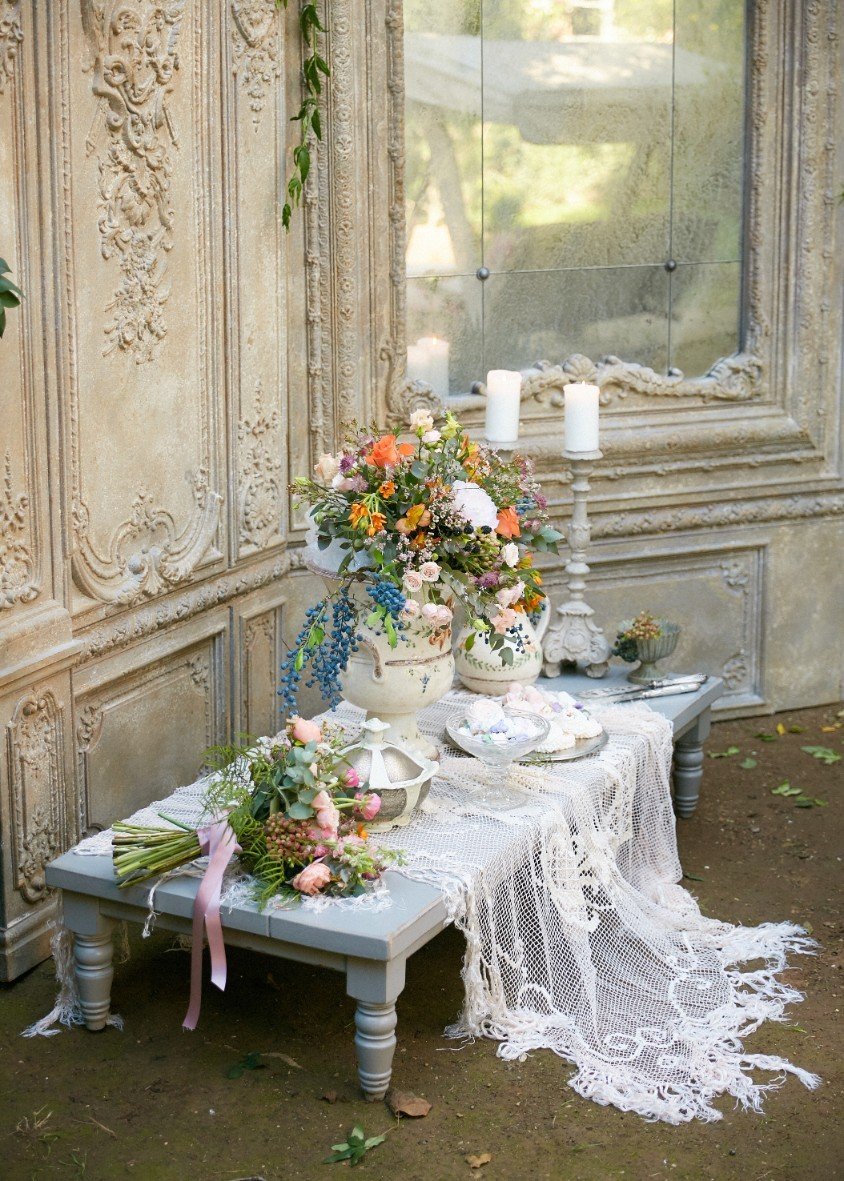 On point with the theme of Springtime and The Secret Garden, our cake was completely covered in sugar art. Maria’s Cakes and Cookies created all the sweets with little details like sugar butterflies, leaves and roses. The rest of the sweets like meringue, cupcakes, macaroons and eclairs were all designed in the same, luxe Tuscan-style theme