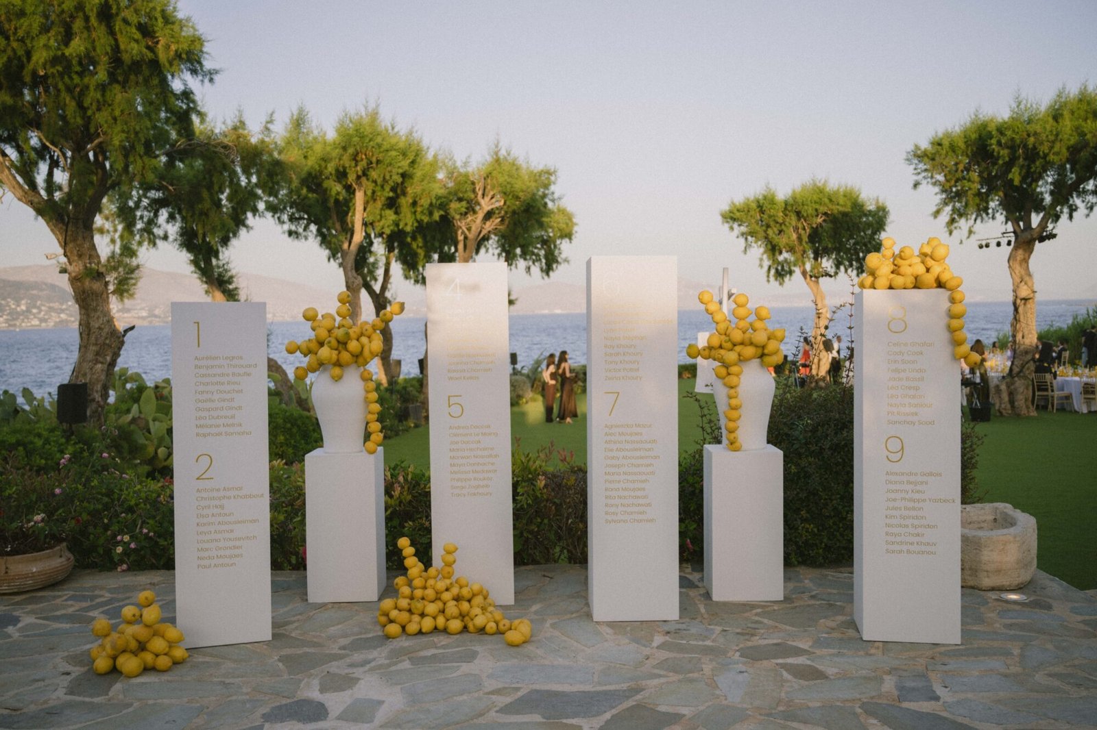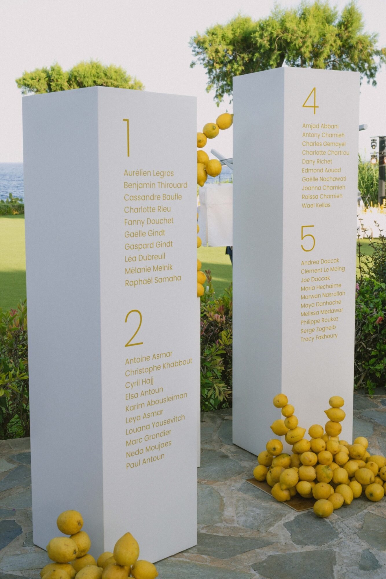 Lemons were a meaningful symbol for the couple because the first thing they ever bought together was a lemon tree. Making it a personal and playful design element woven into the entire celebration.