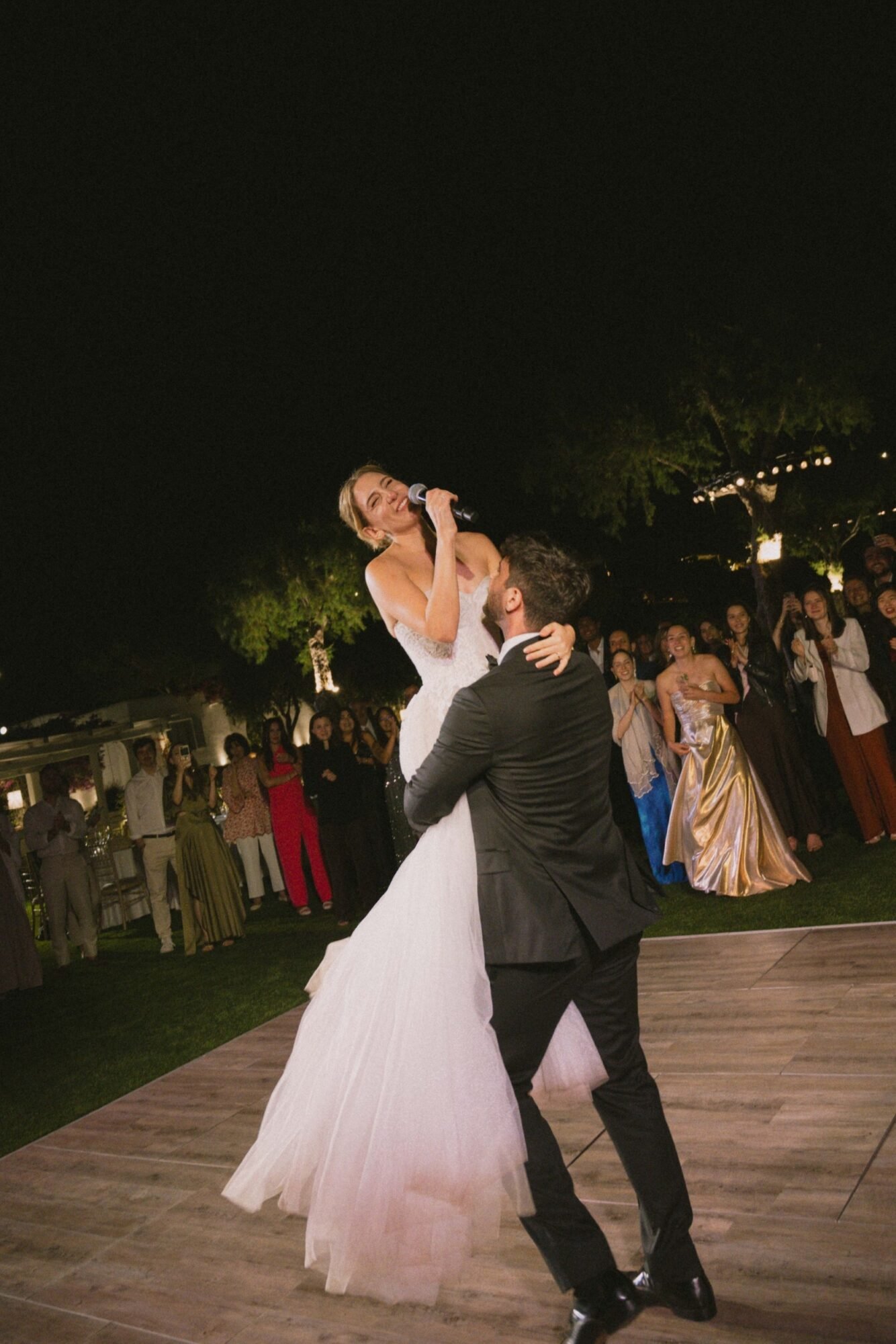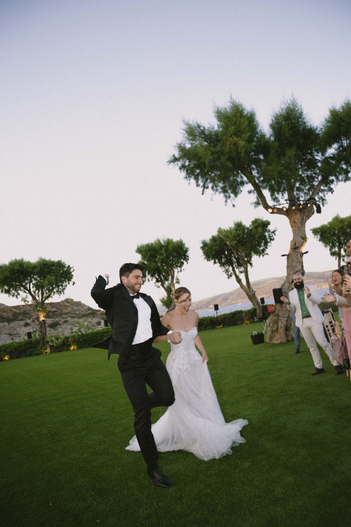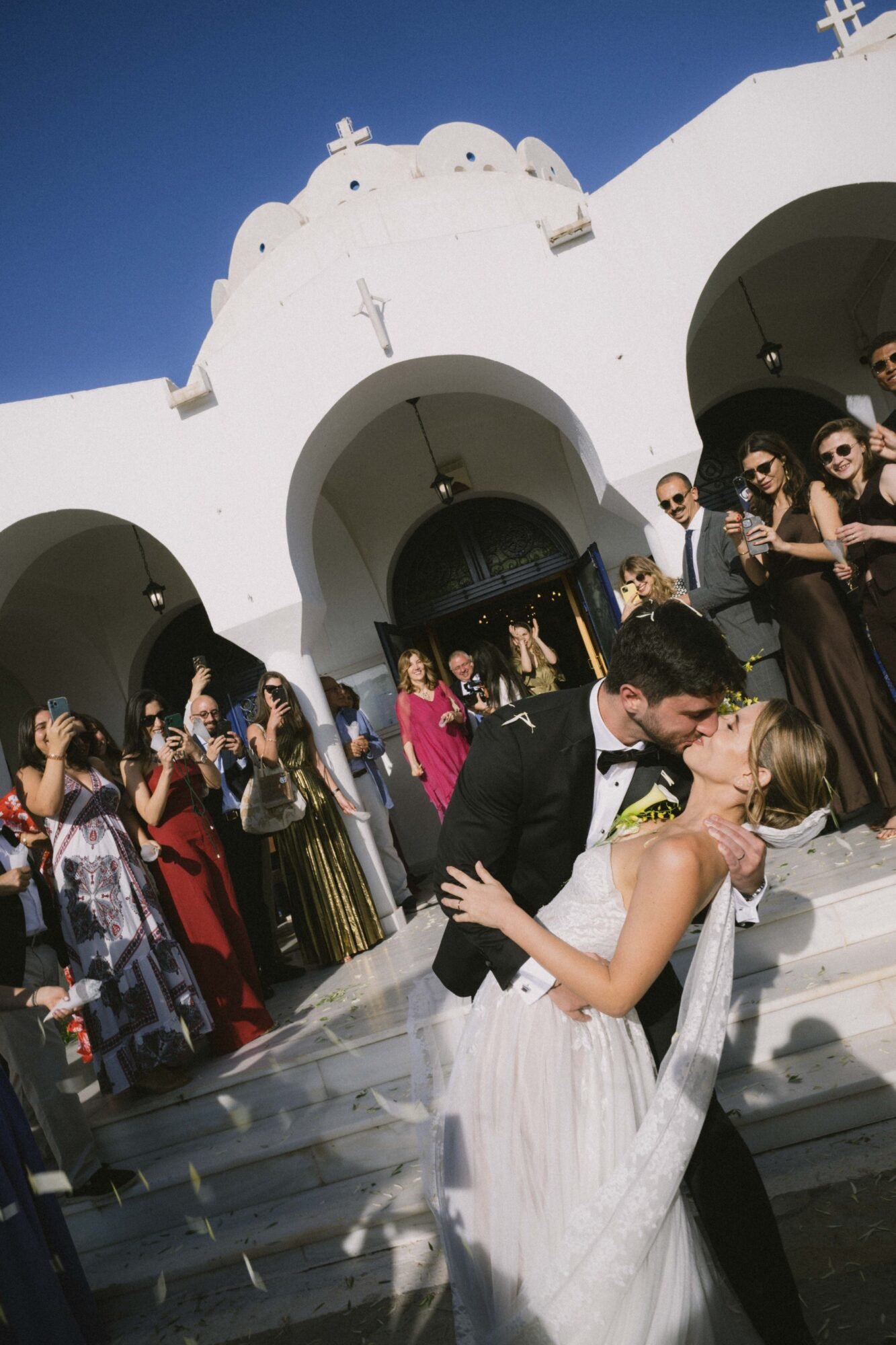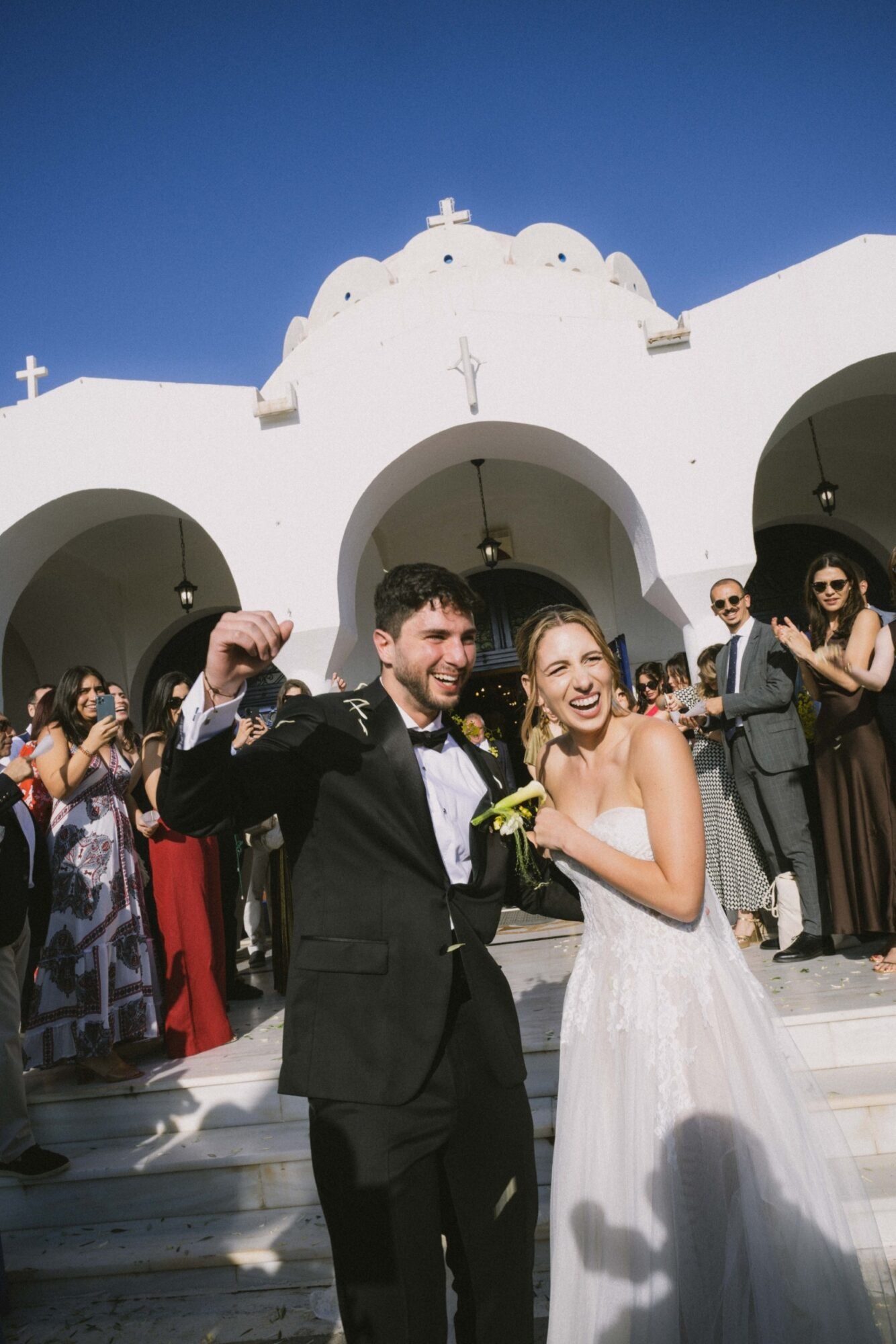 The ceremony followed the traditions of the Greek Orthodox Church, which does not allow music or readings during the service. For their entrance as a couple, they selected “You & Me (Rivo Remix)” by Disclosure, Eliza Doolittle, and Rivo. A vibrant and emotional choice that set the tone for the evening.
