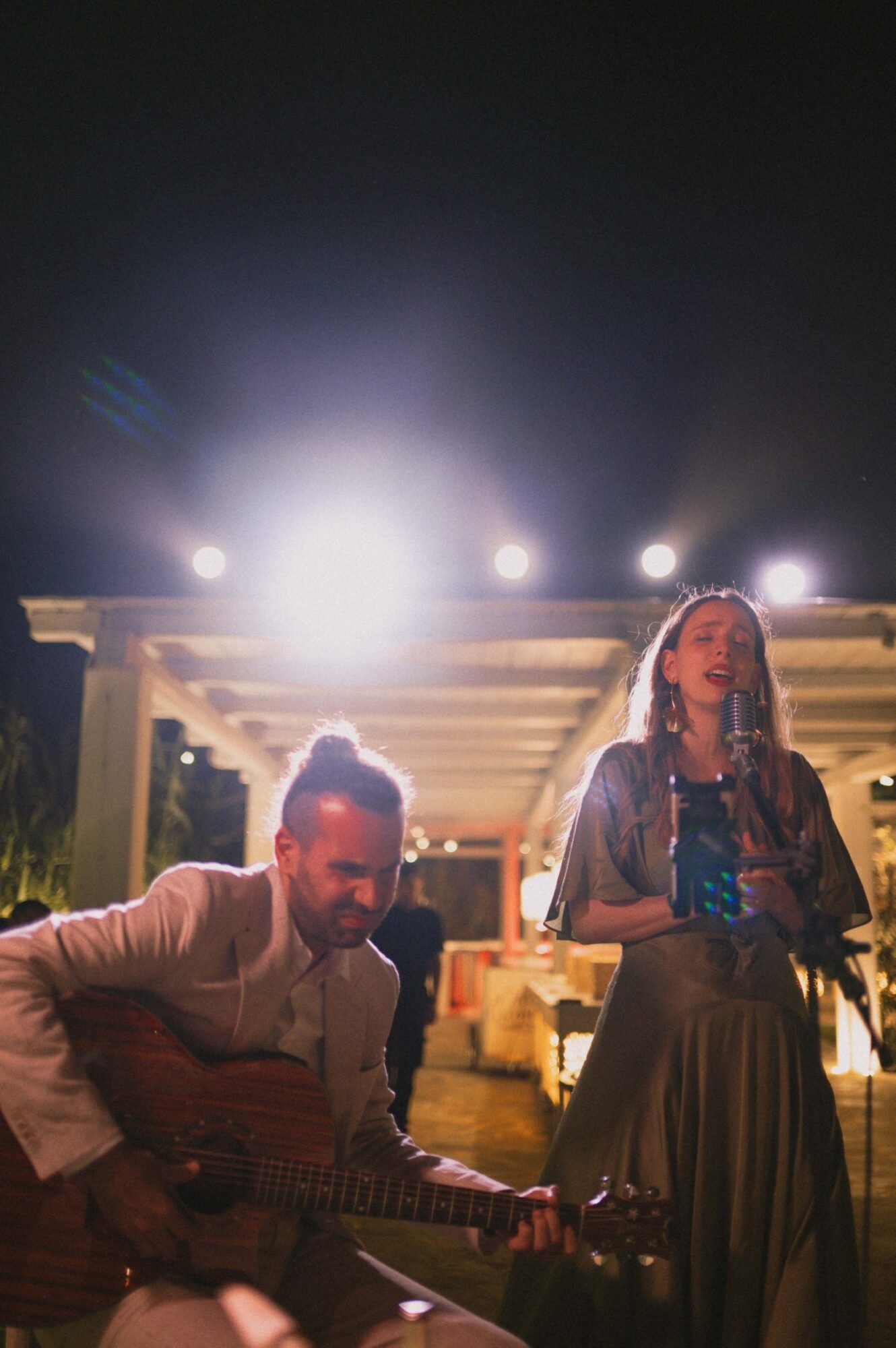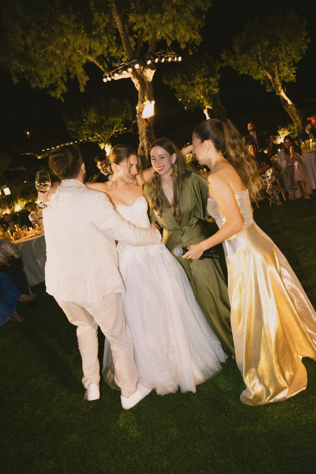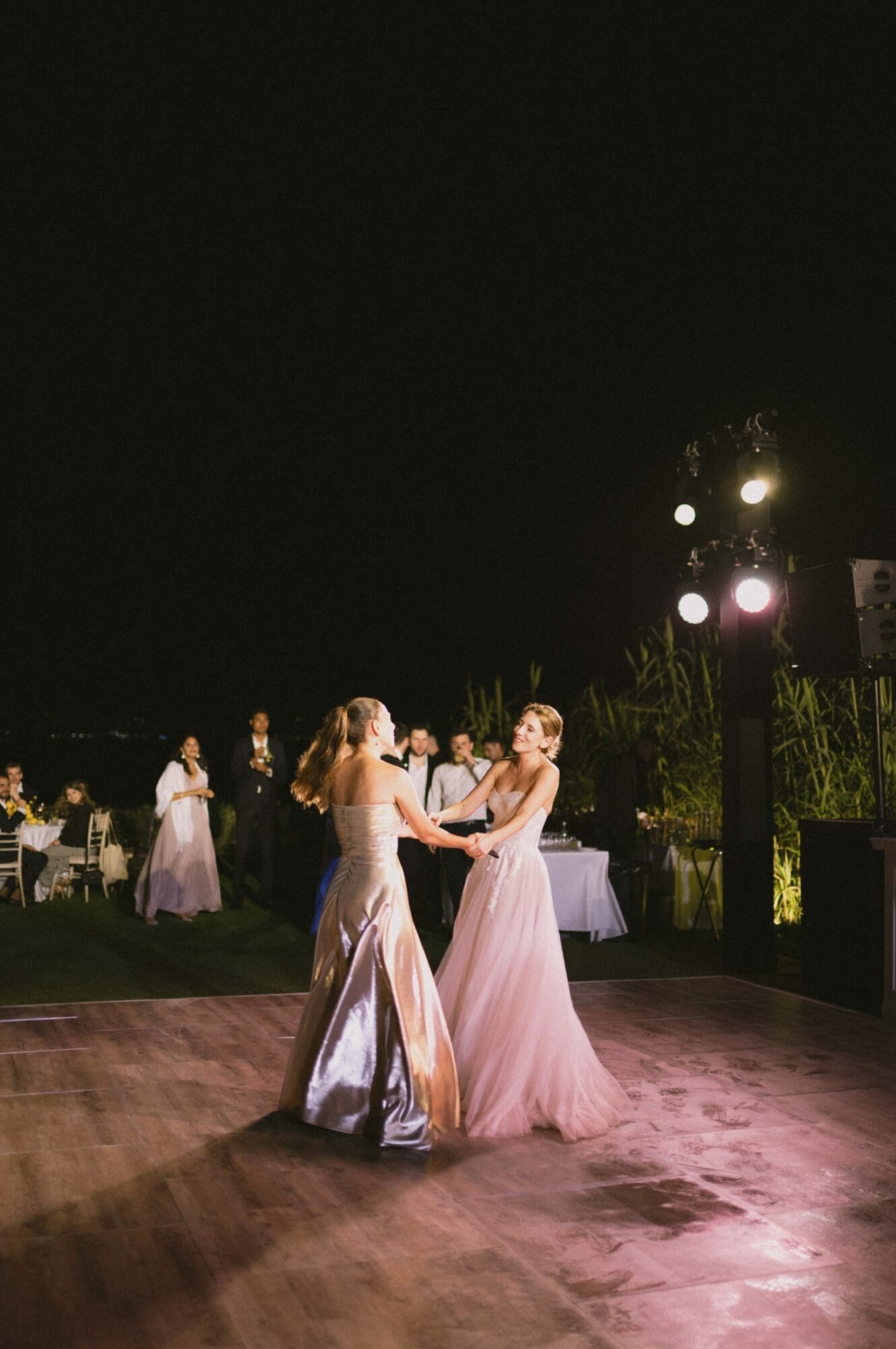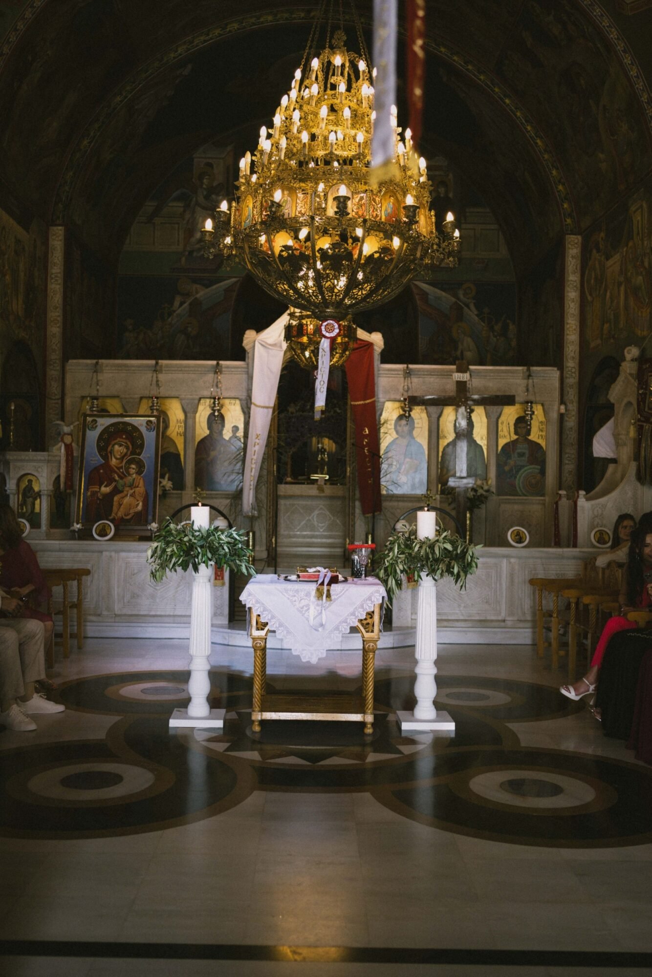 The ceremony followed the traditions of the Greek Orthodox Church, which does not allow music or readings during the service. For their entrance as a couple, they selected “You & Me (Rivo Remix)” by Disclosure, Eliza Doolittle, and Rivo. A vibrant and emotional choice that set the tone for the evening.