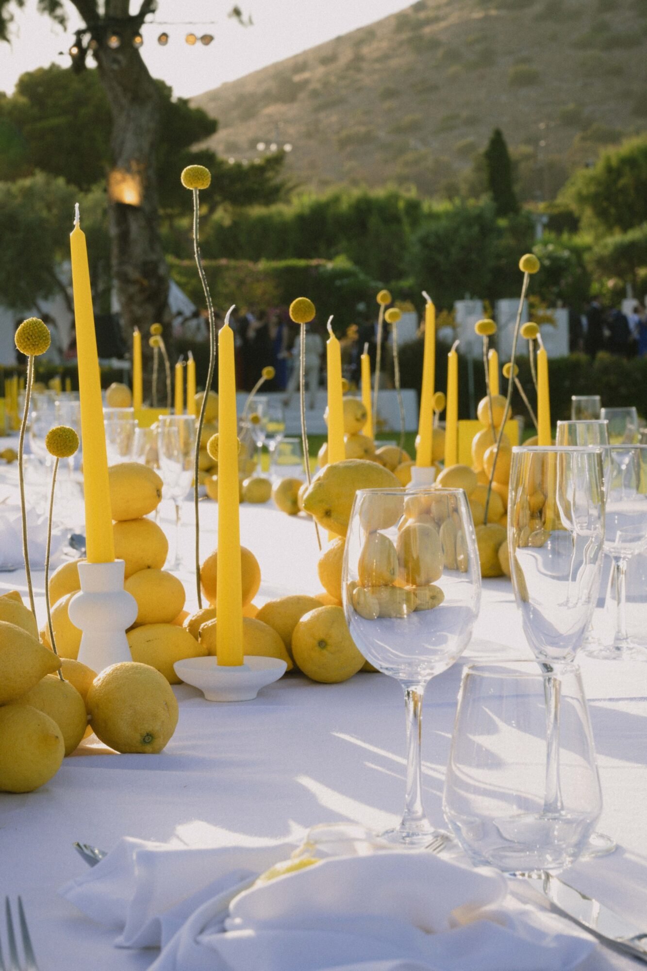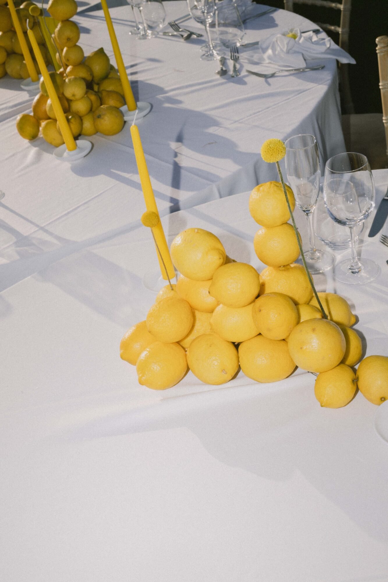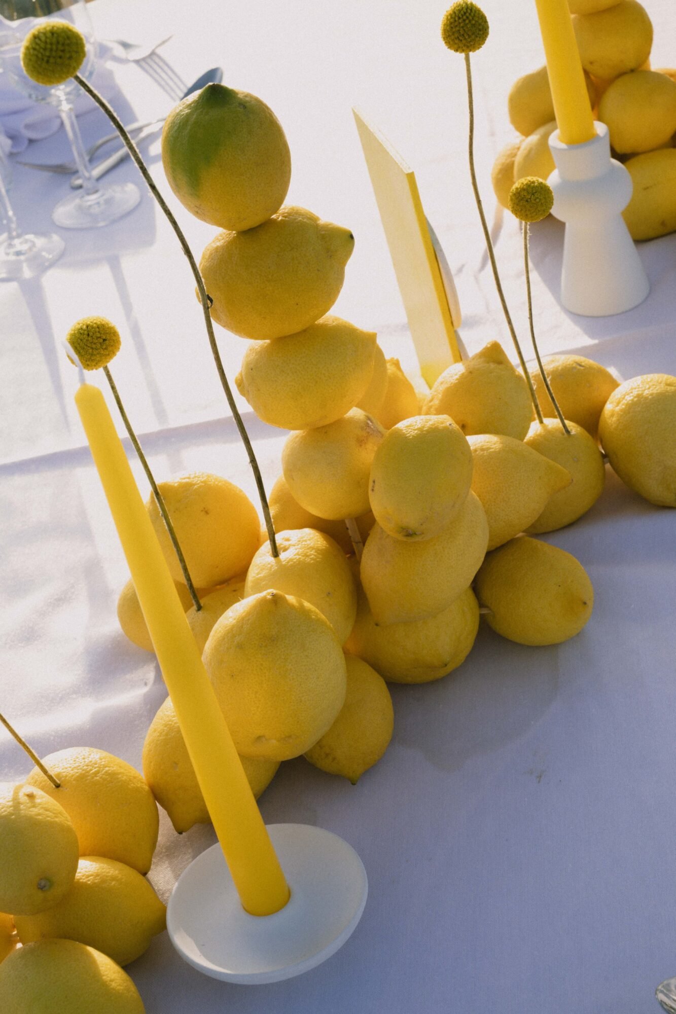 - Fresh lemon installations and table styling