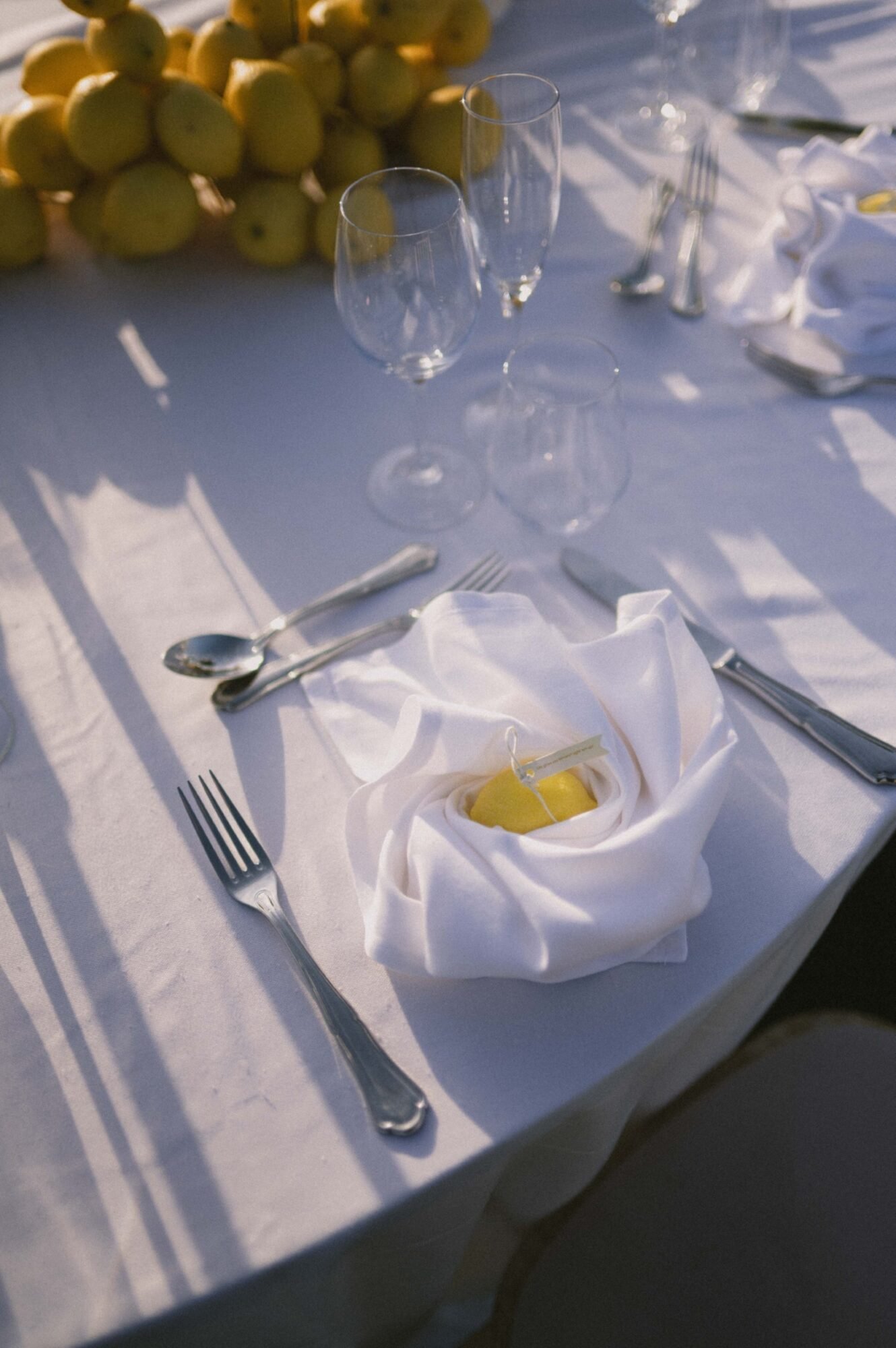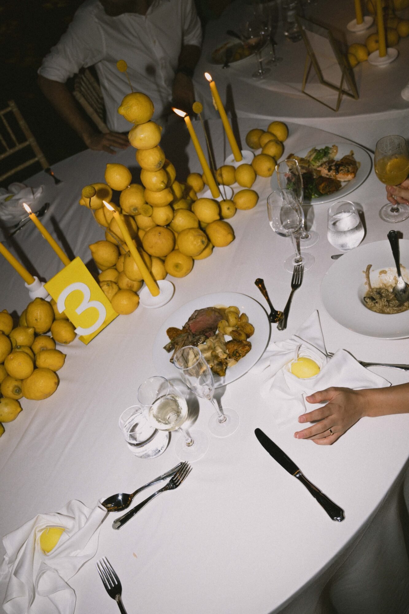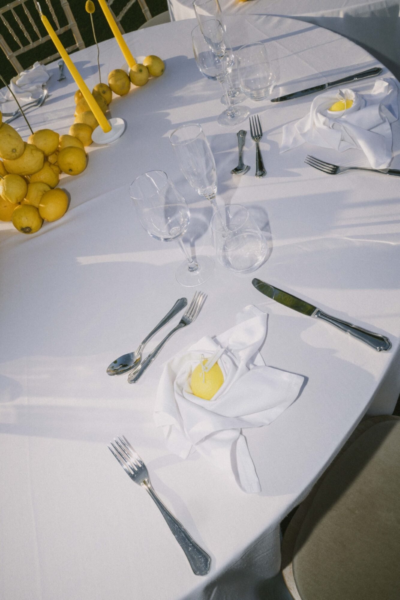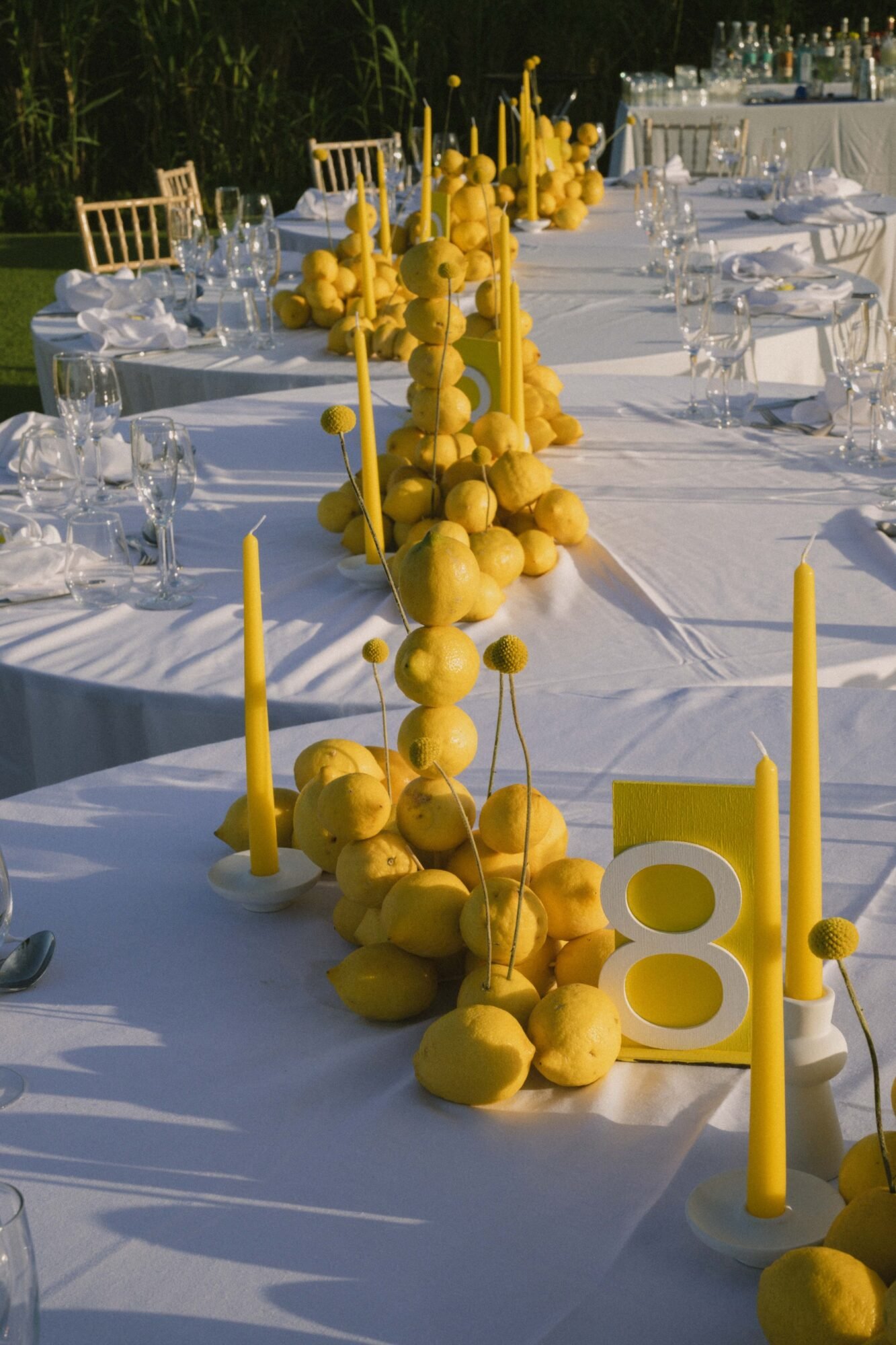 - Fresh lemon installations and table styling
