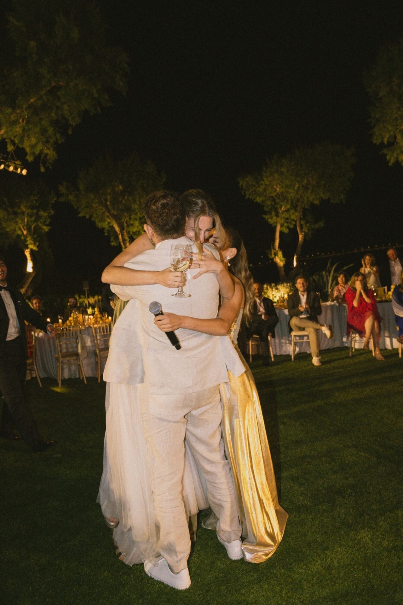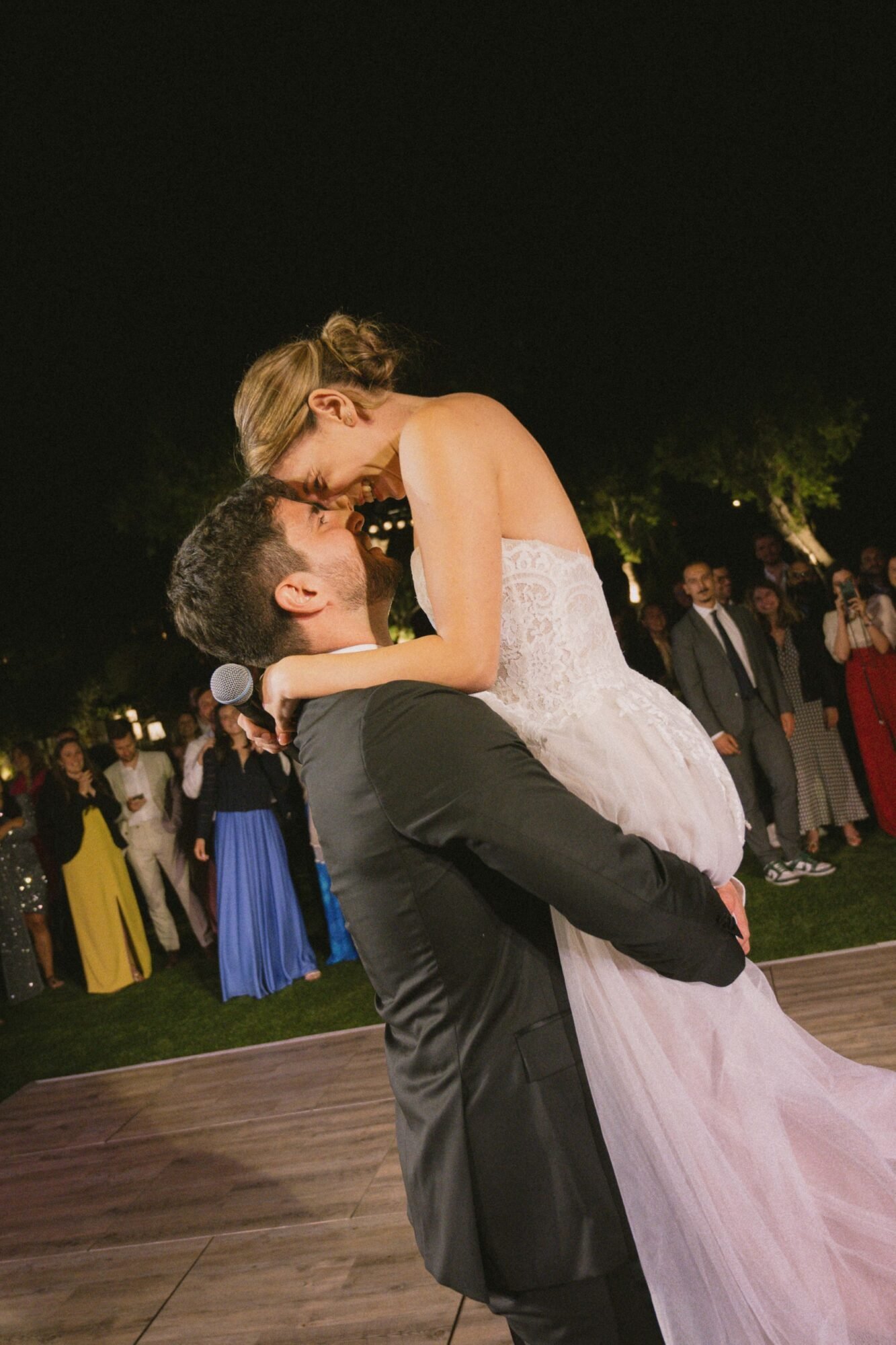 Their first dance was anything but ordinary. They performed it while rapping along together to their chosen song, creating a moment full of energy and personality. The celebration reached its peak with the final song performed by the live band, “A Sky Full of Stars” by Coldplay, during which the couple cut their wedding cake, surrounded by loved ones and an atmosphere full of joy.
