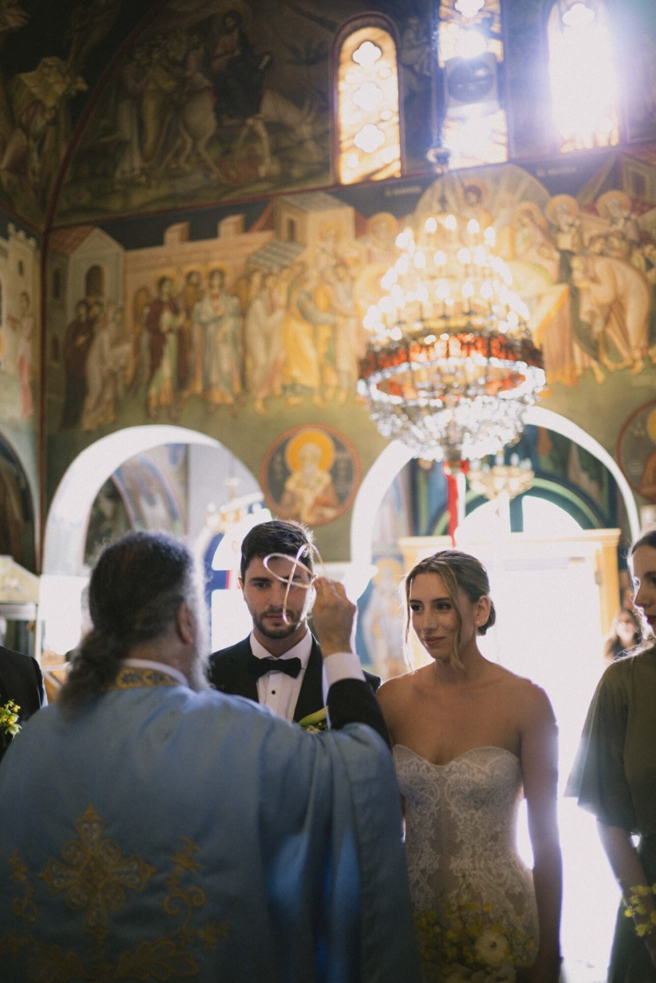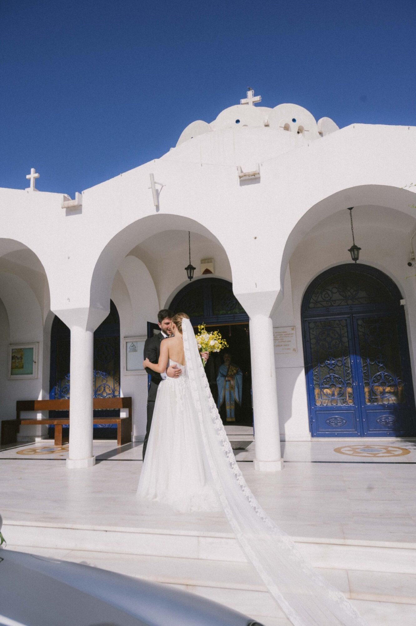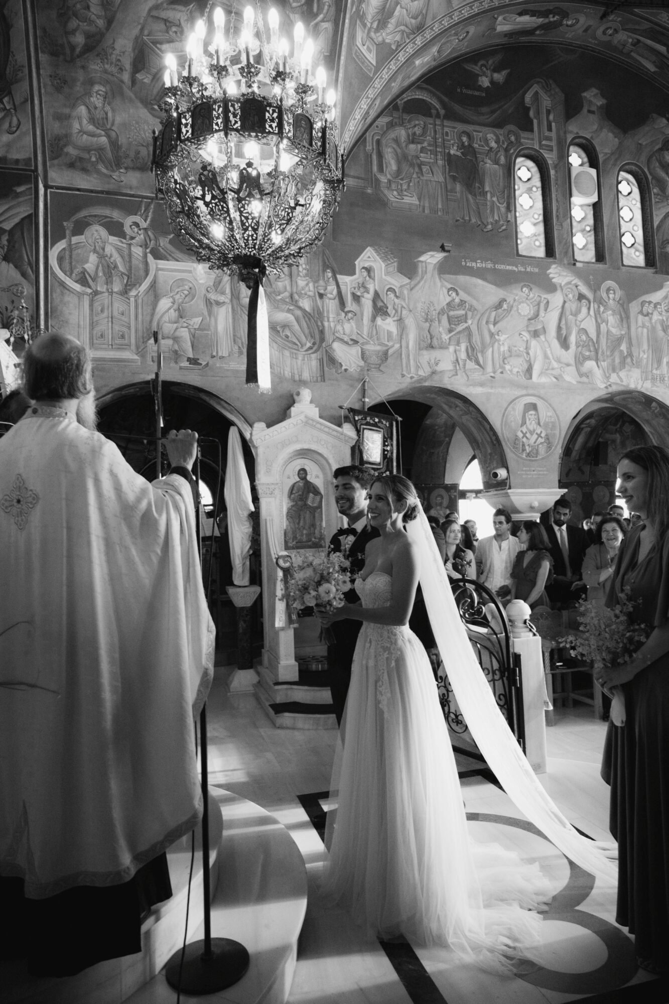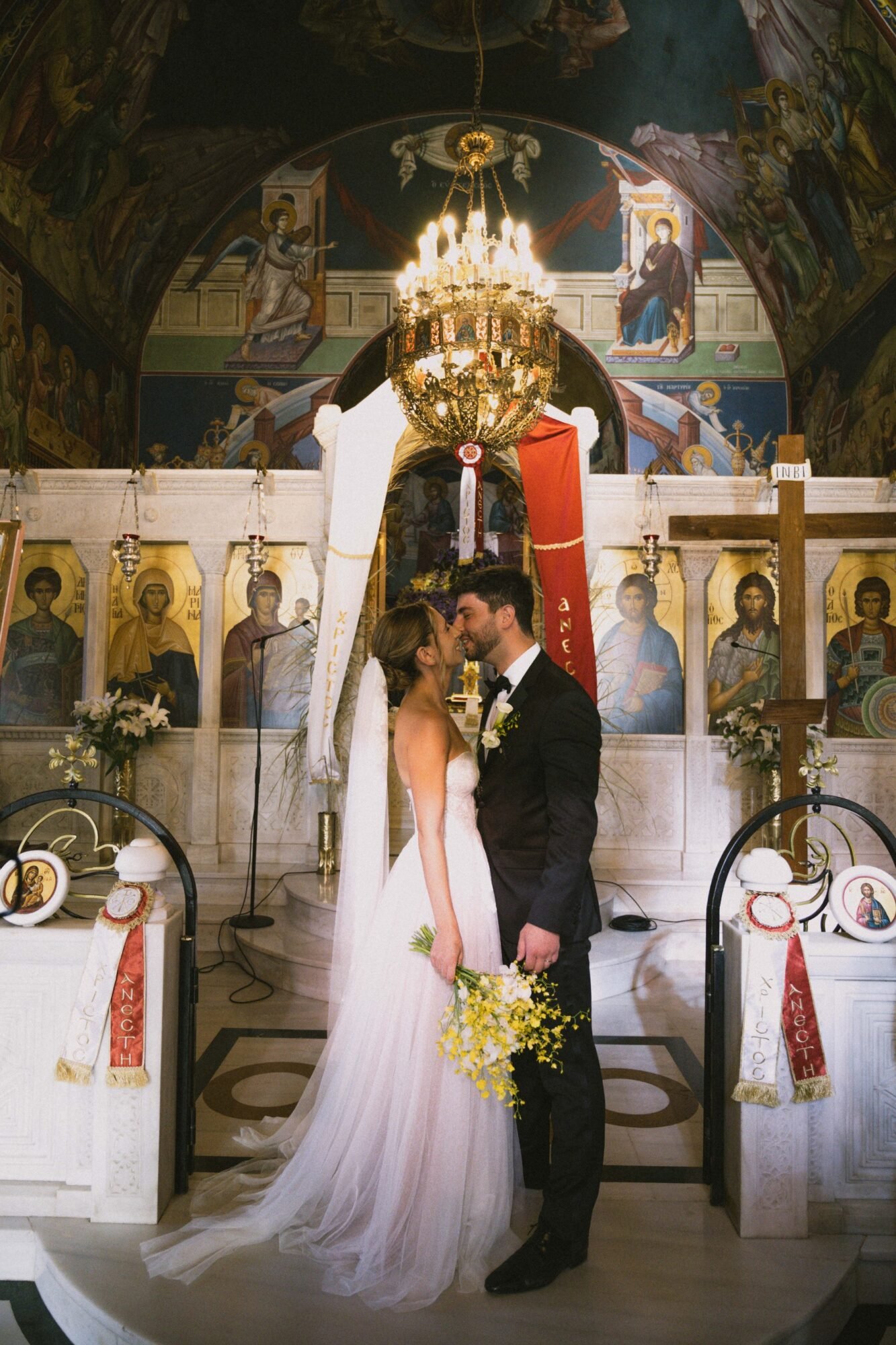 The ceremony followed Greek Orthodox traditions, which do not include music or readings. While the couple personalized the celebration by exchanging vows on the dancefloor at the reception venue, before their first dance.