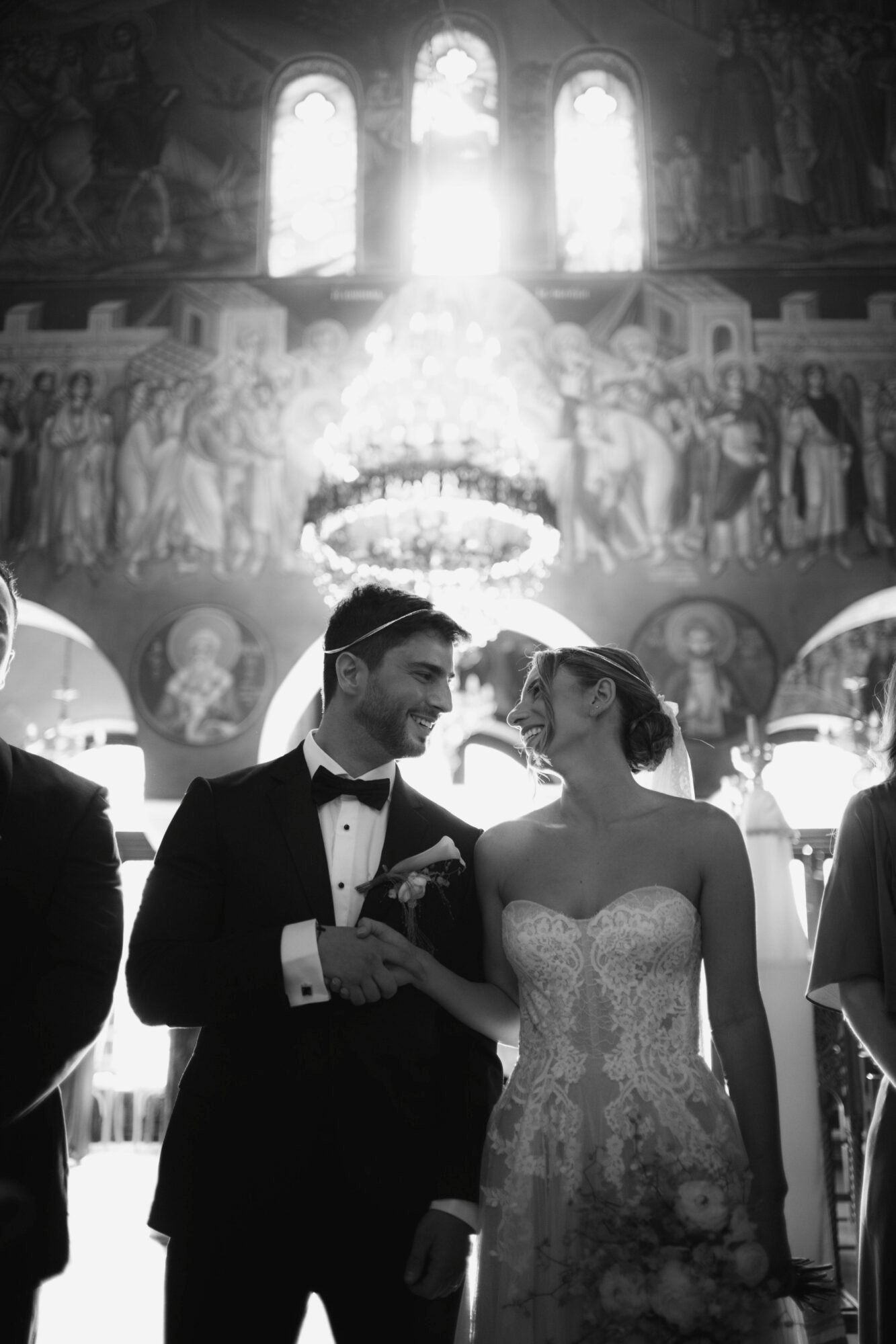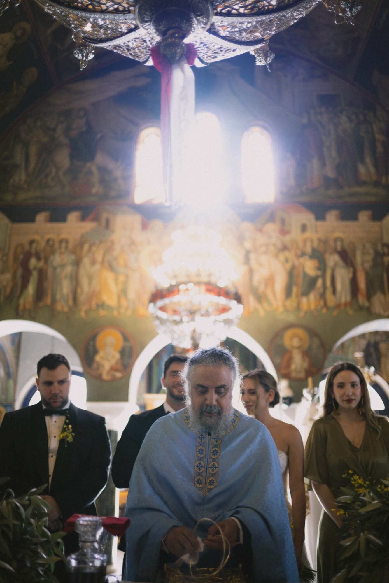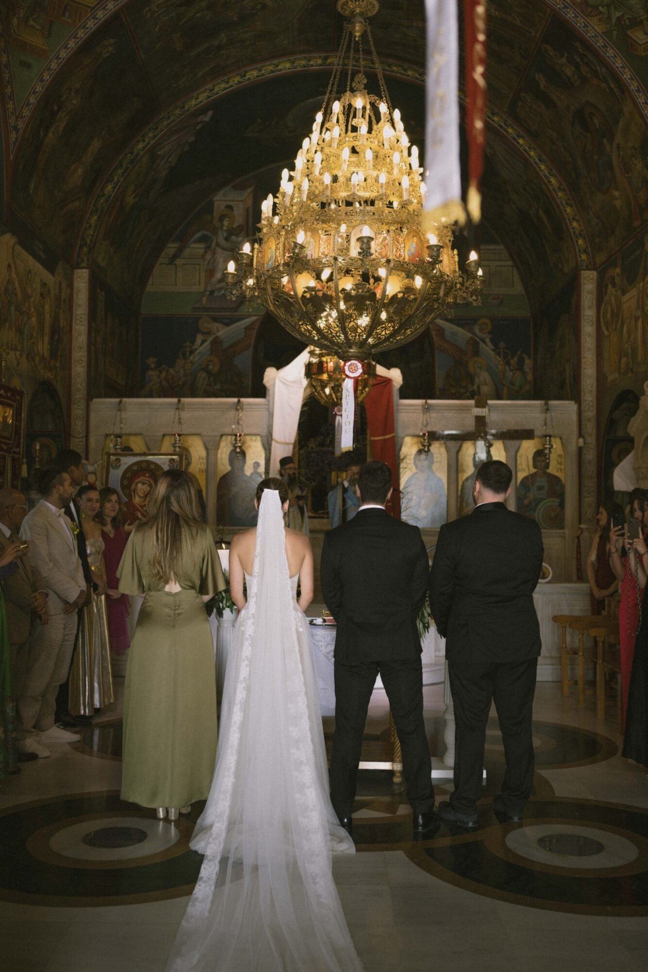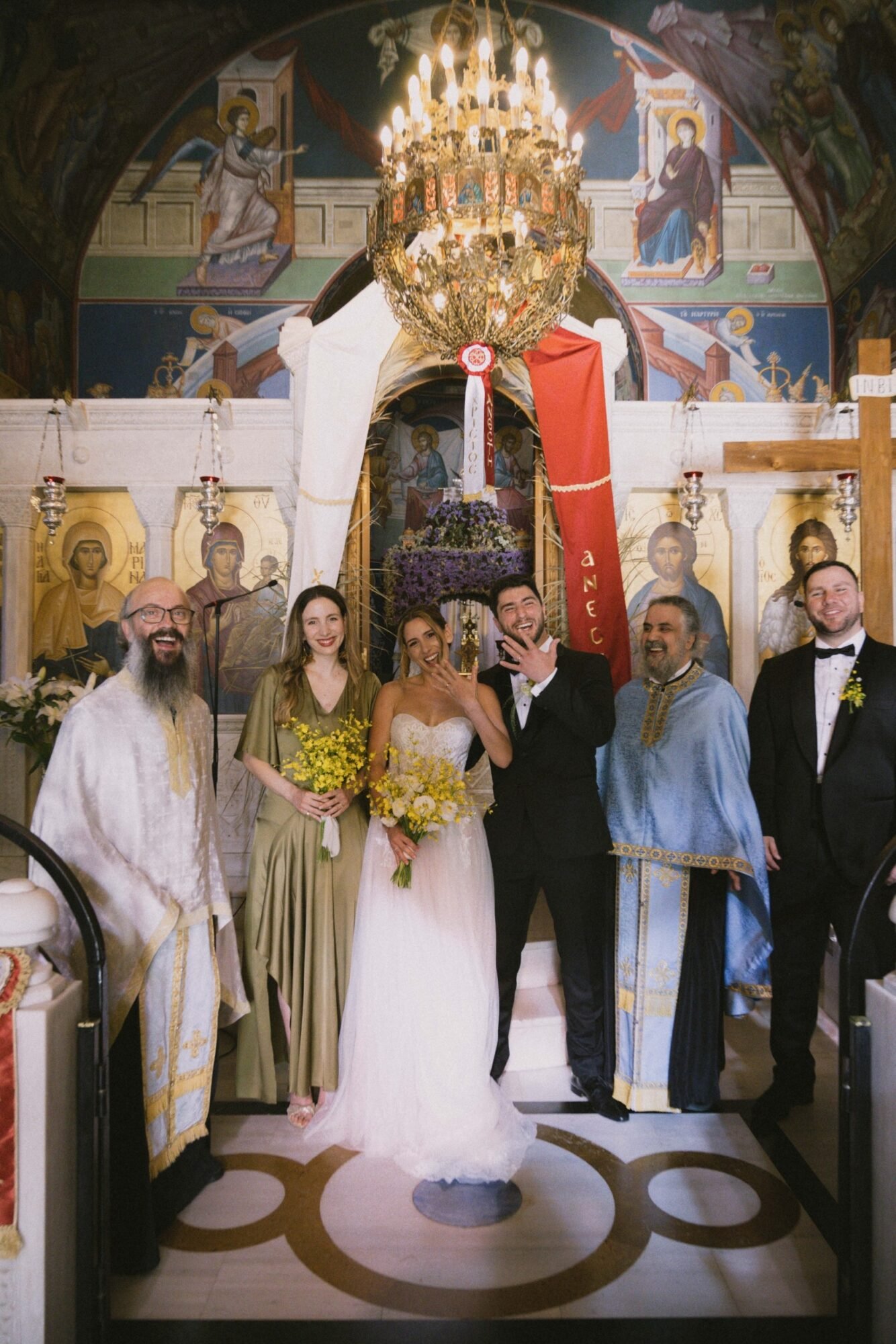 The ceremony followed Greek Orthodox traditions, which do not include music or readings. While the couple personalized the celebration by exchanging vows on the dancefloor at the reception venue, before their first dance.