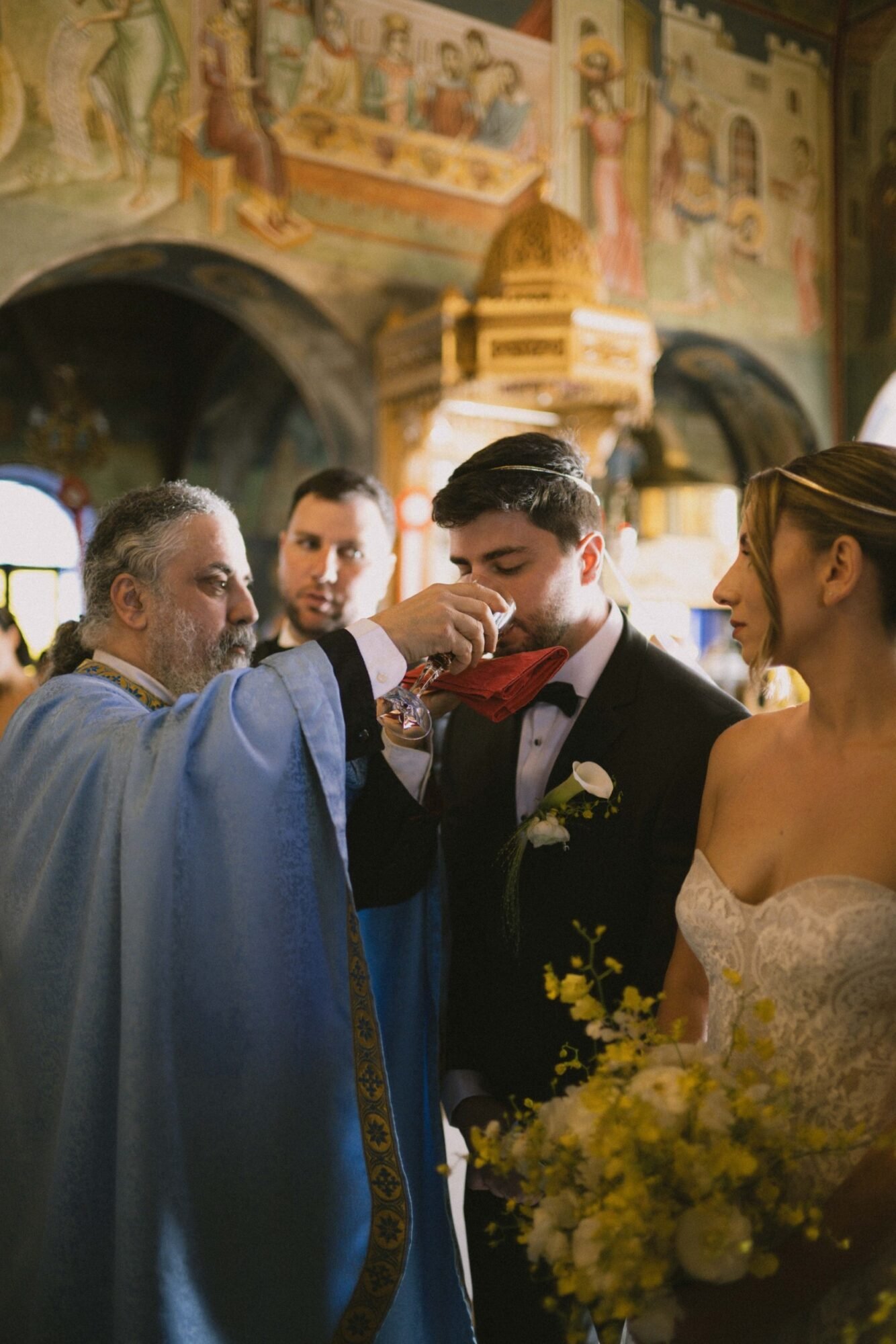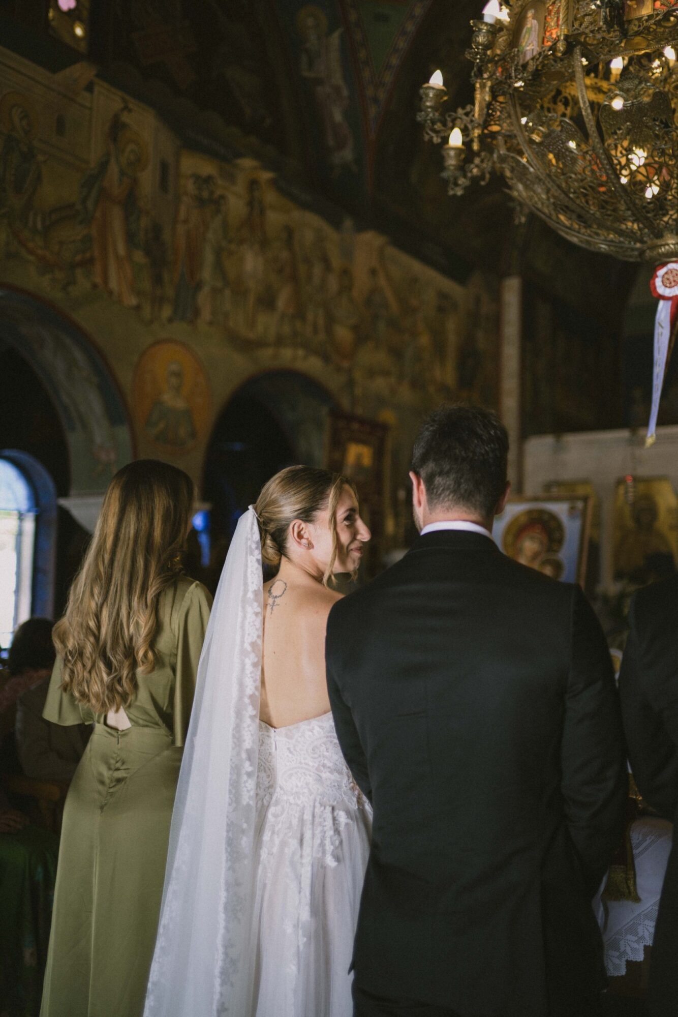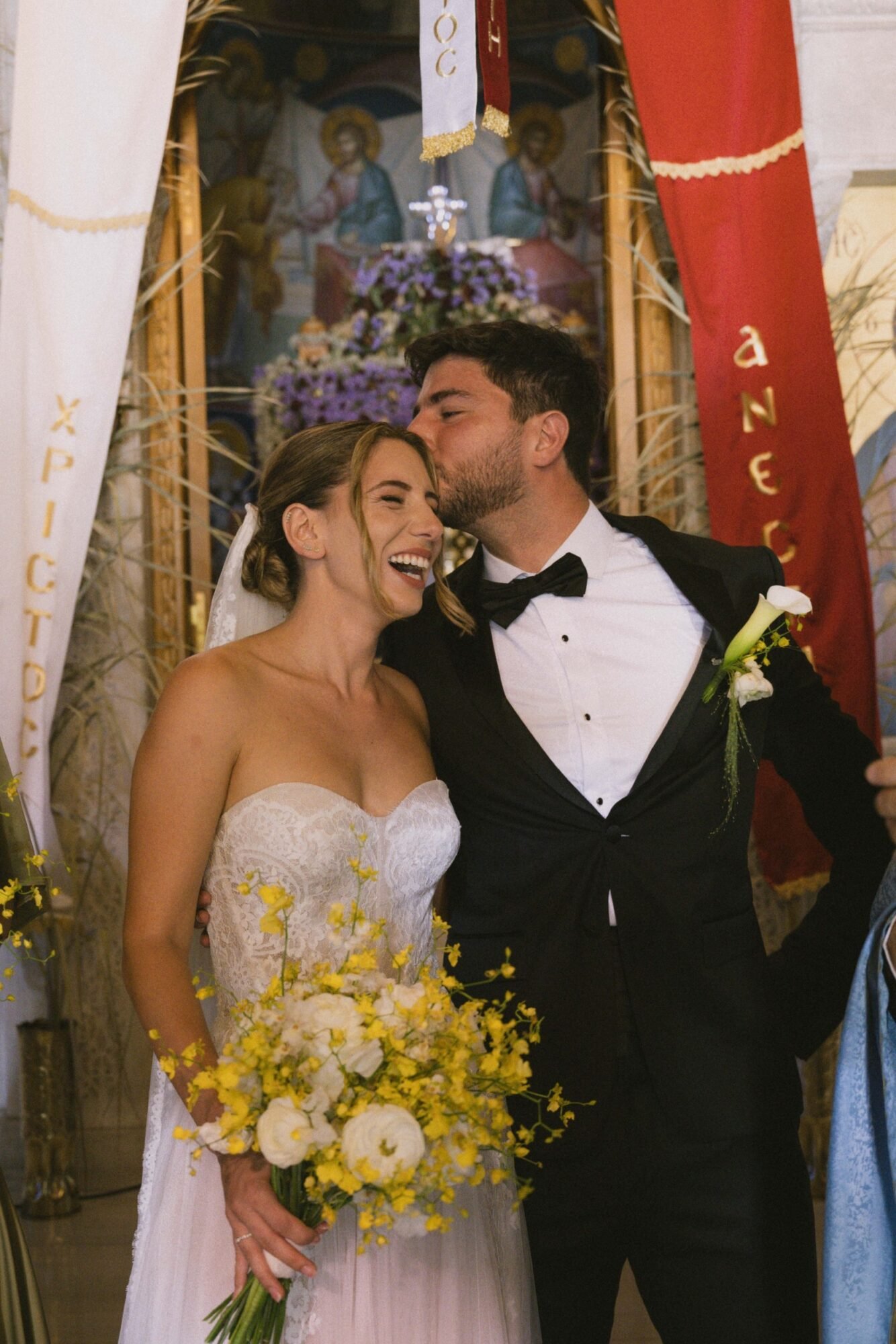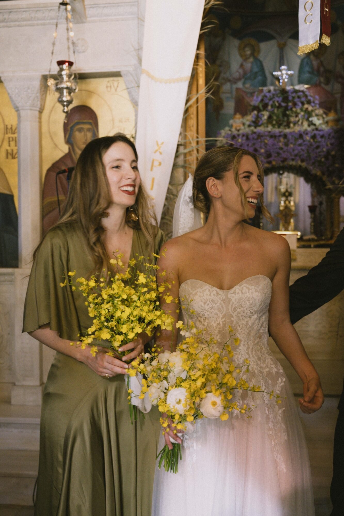 The ceremony followed Greek Orthodox traditions, which do not include music or readings. While the couple personalized the celebration by exchanging vows on the dancefloor at the reception venue, before their first dance.