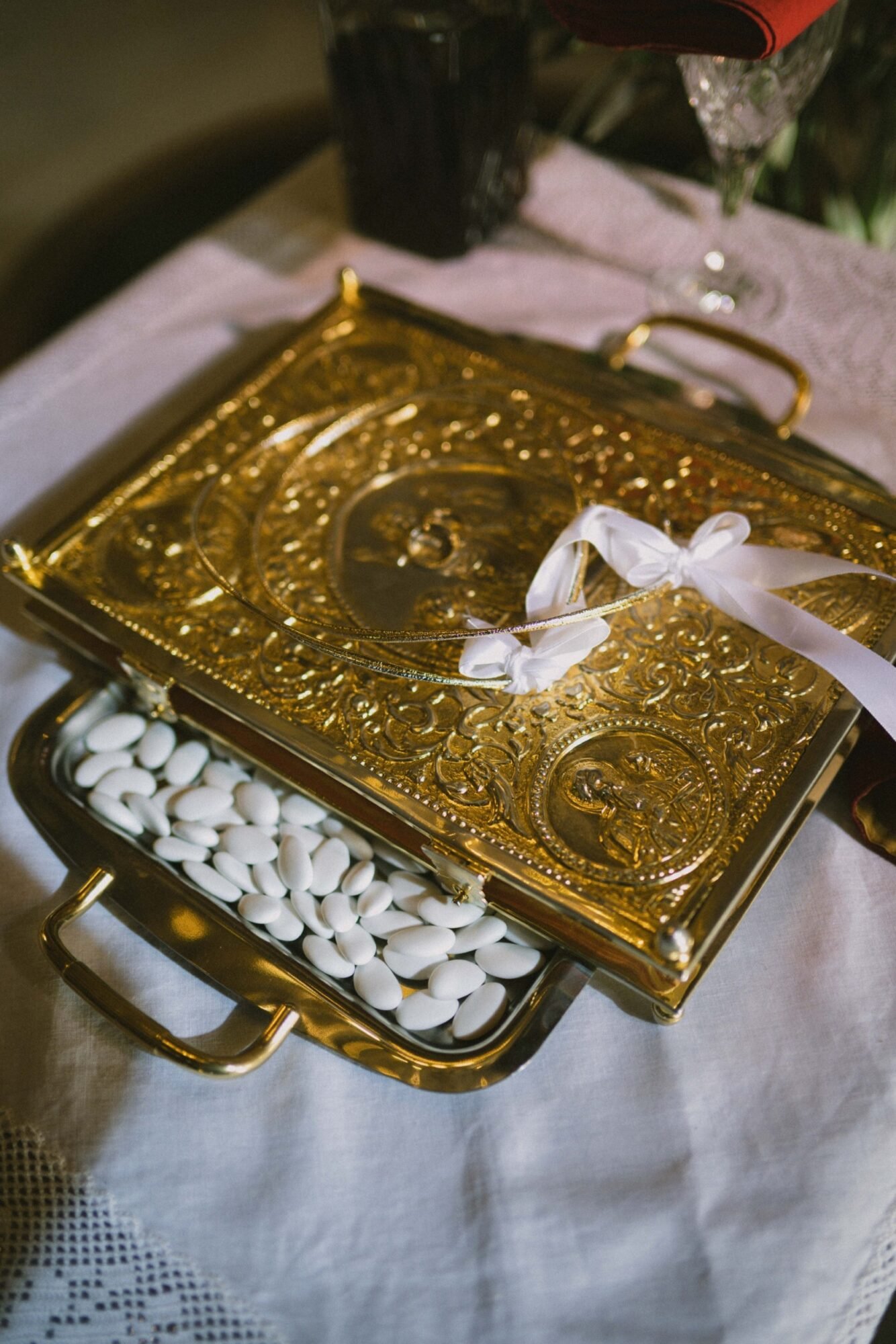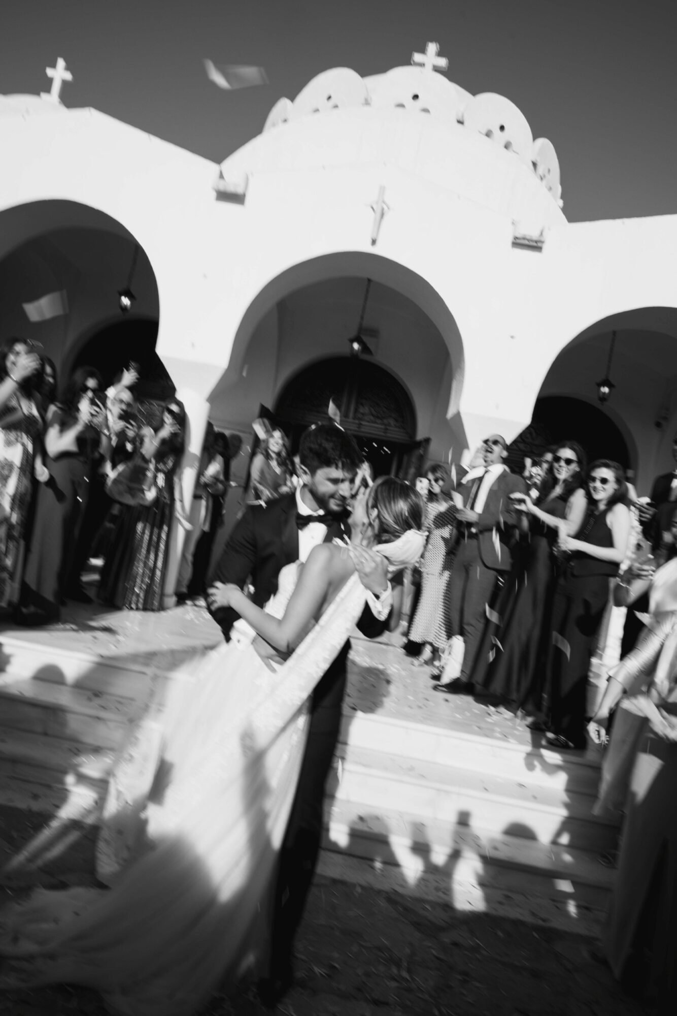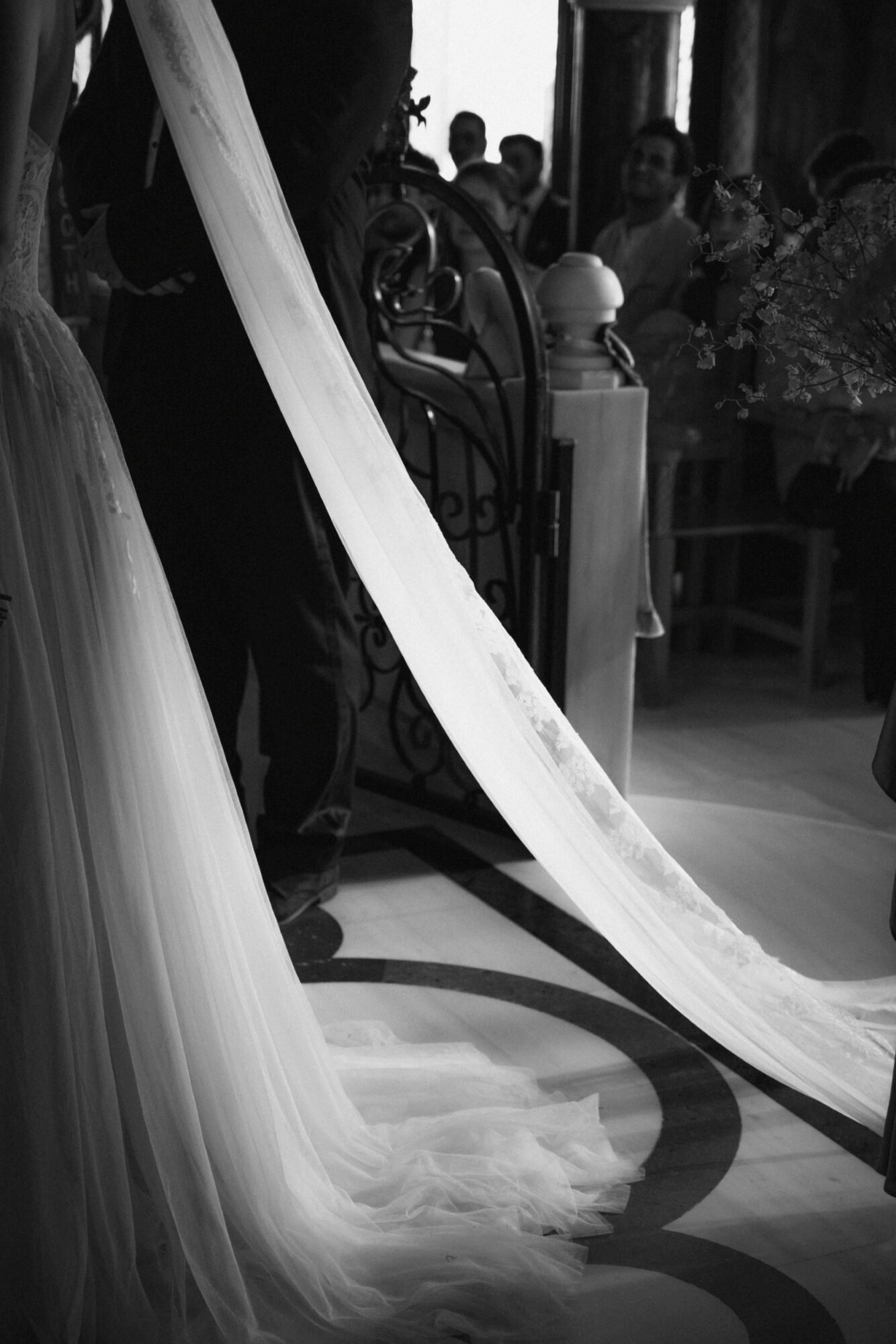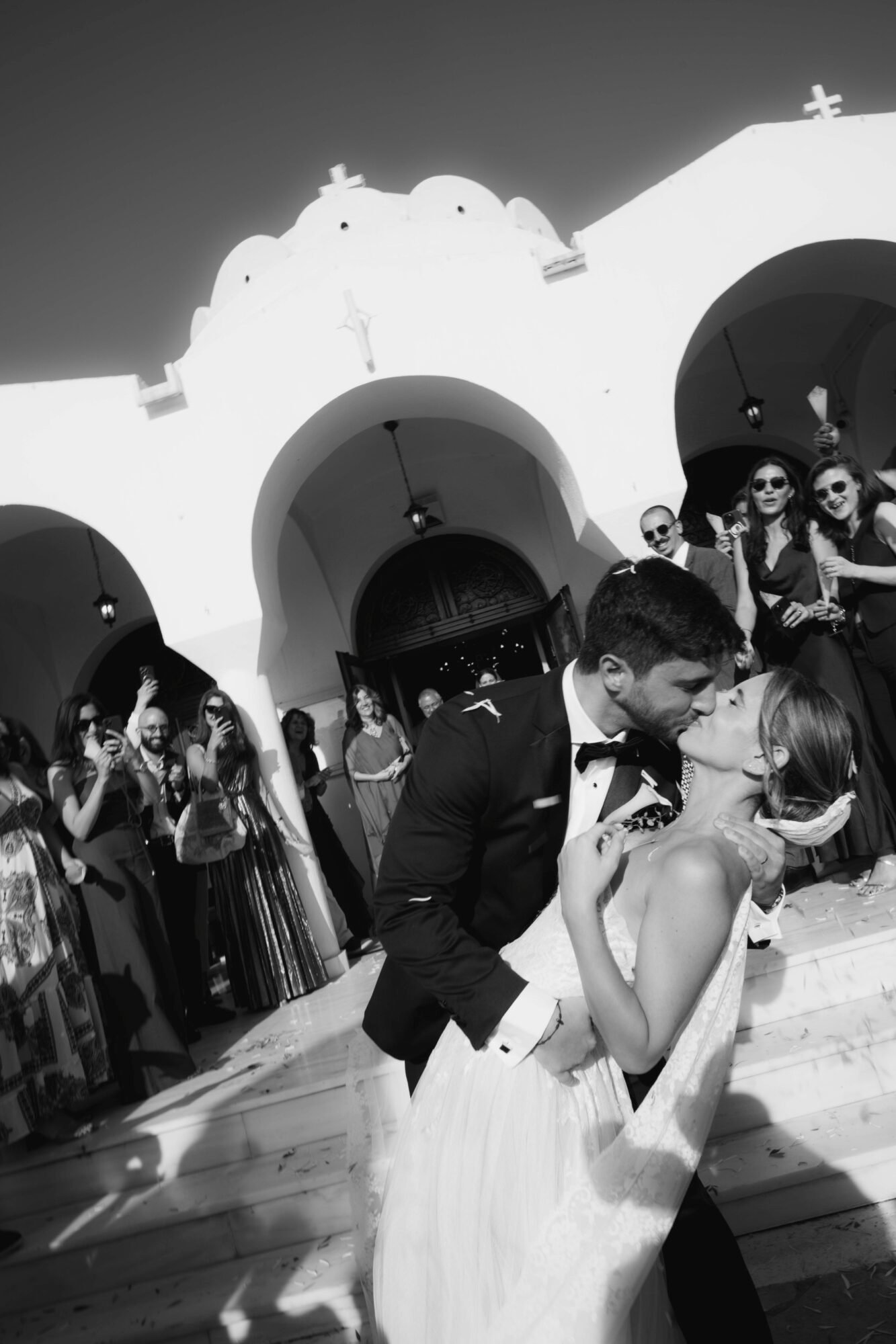 The ceremony followed Greek Orthodox traditions, which do not include music or readings. While the couple personalized the celebration by exchanging vows on the dancefloor at the reception venue, before their first dance.