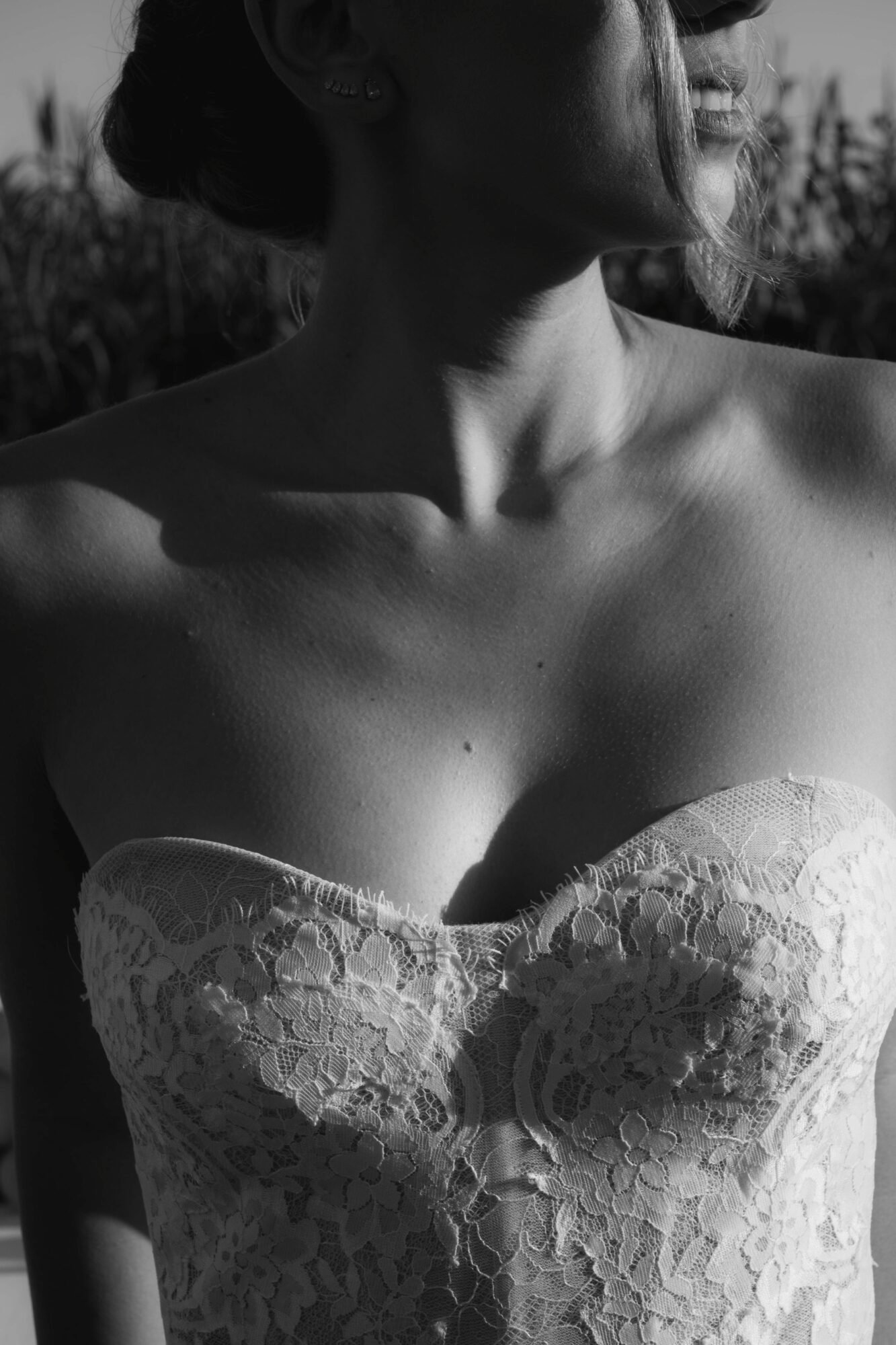 Jaislyn dress by Watters Design wedding dress has a soft, romantic look with a hint of vintage charm. It’s made from airy netting and delicate lace that adds beautiful detail and texture. The dress features a corset-style bodice that gently shapes the waist and a strapless sweetheart neckline that frames the shoulders. The skirt flows in light, sheer layers, giving the gown an elegant and graceful feel. Overall, it creates a vibe that’s timeless, feminine, and full of quiet beauty.