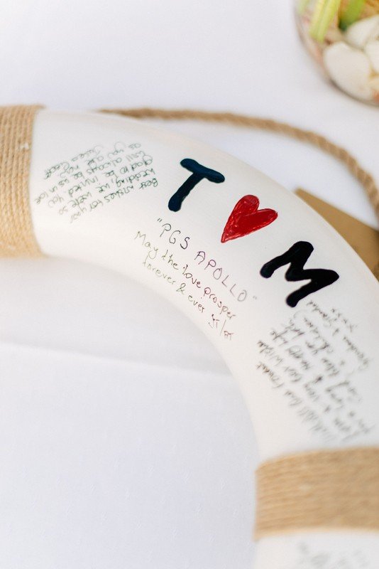 We had a personalized wedding cake topper made of the two of us scuba diving. This is a big hobby of ours that we learnt together in Fiji where we got engaged, so this was great to have for the cake. We made our own driftwood table places with each guest’s name on and we made drift wood sailboats for the table numbers. The decorations added by the team in Crete were beautiful!