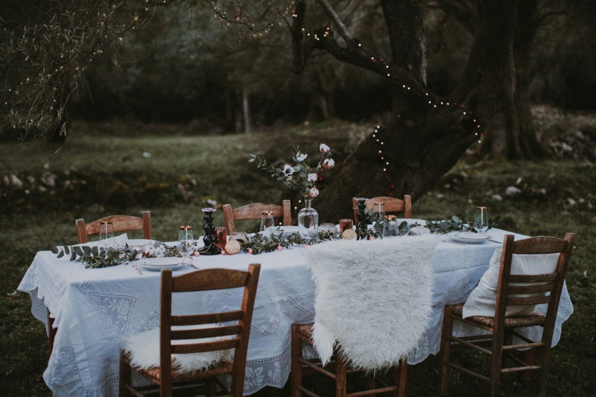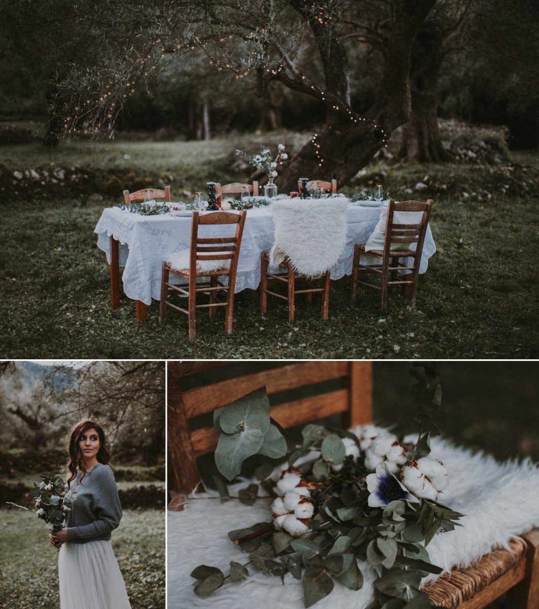 While temperatures can vary from cold to warm, sunshine is a guarantee in Greece. This climate can also be perfect for a Spring outdoor wedding, with winter theme, like this inspirational shoot put together in Lefkada.