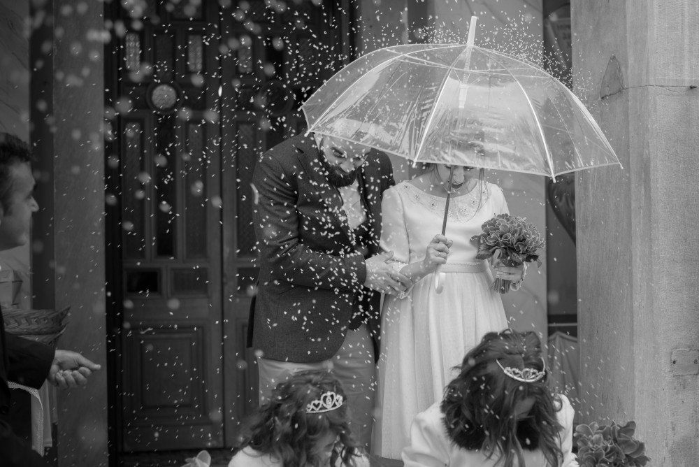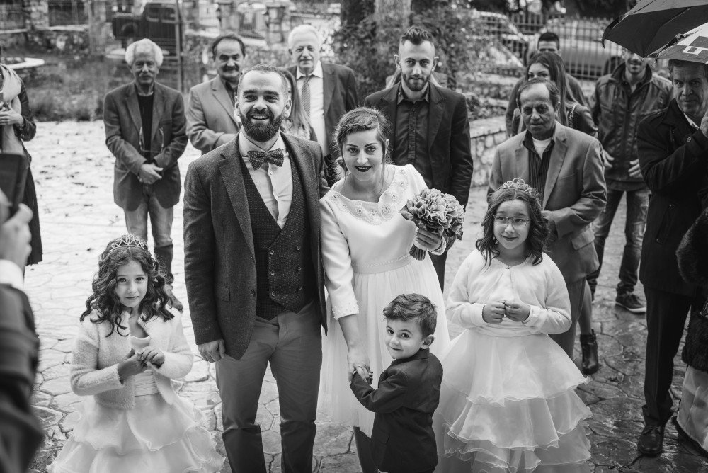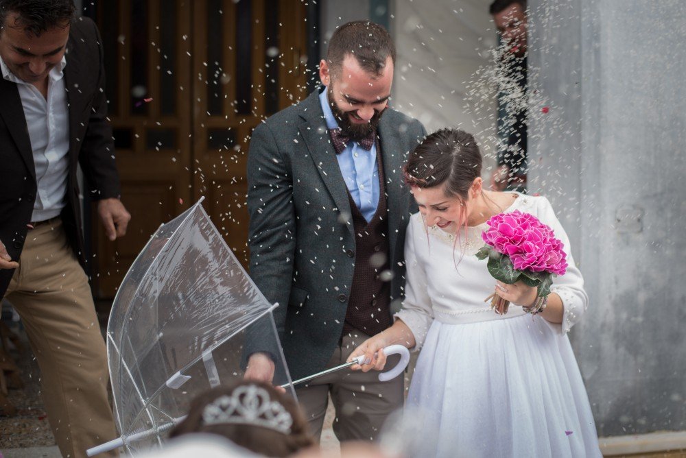 The Orthodox ceremony was held at the local church. My favorite scene throughout the day was after the ceremony. If I had to put a title to this moment, it would have to be called “Umbrella’. Dimitra had an elegant see-through umbrella with lace details, in case of rain. She was not expected to use it while coming out of the church, since the rain had stopped falling, but she did end up using it, while the “rice rain” started which is one of the most essential Greek wedding traditions.