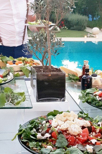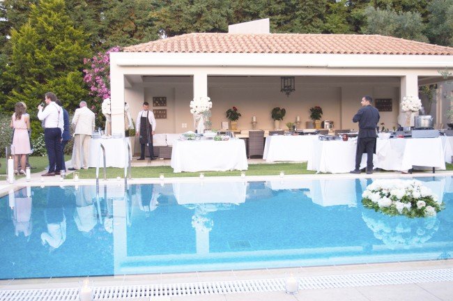 After the church ceremony, everyone returned to the villa where GTouch catering specialists served the gourmet dinner freshly cooked on the spot just for this event. The coupe wanted a bit of everything all top quality ingredients for their dinner. The menu was elaborate, from seafood like lobster pasta, to black Angus beef steaks with special signature sauces and volcano smoked sea salt flakes from Santorini and many more. The food was perfect choice to incorporate Greek flavors with high-end cuisine.