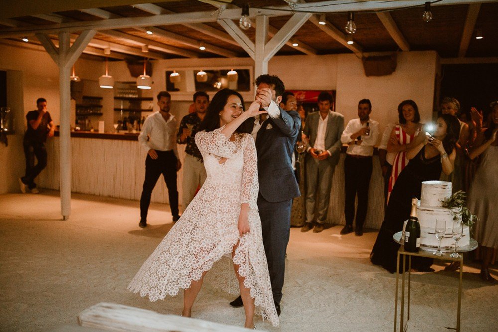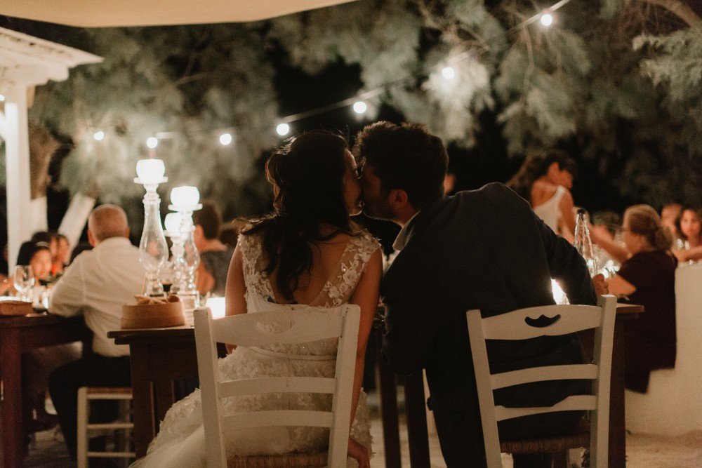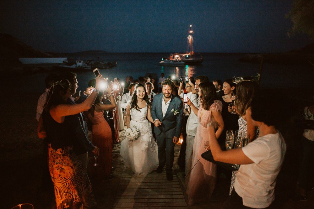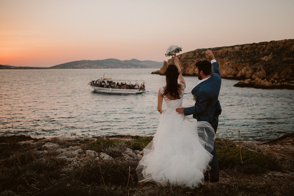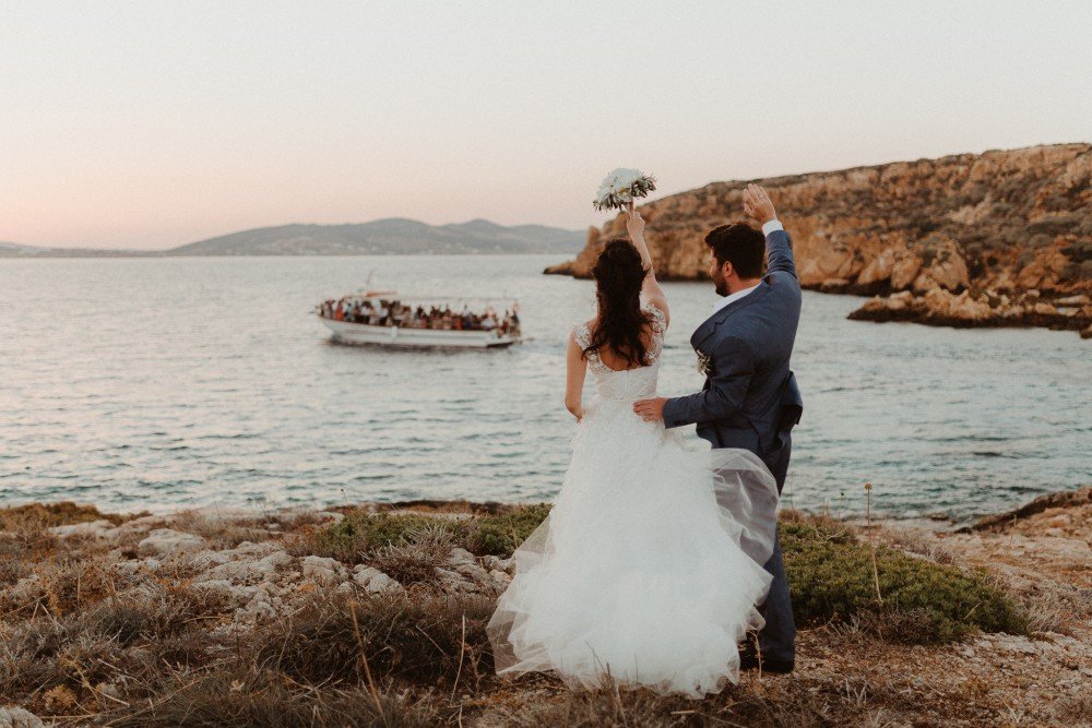 Antiparos, a small cozy island is located just across its bigger brother Paros. The beautiful island was the chosen location of this couple, who brought their family and friends from all over the world, to celebrate their secret union here.