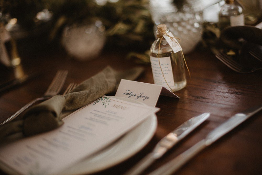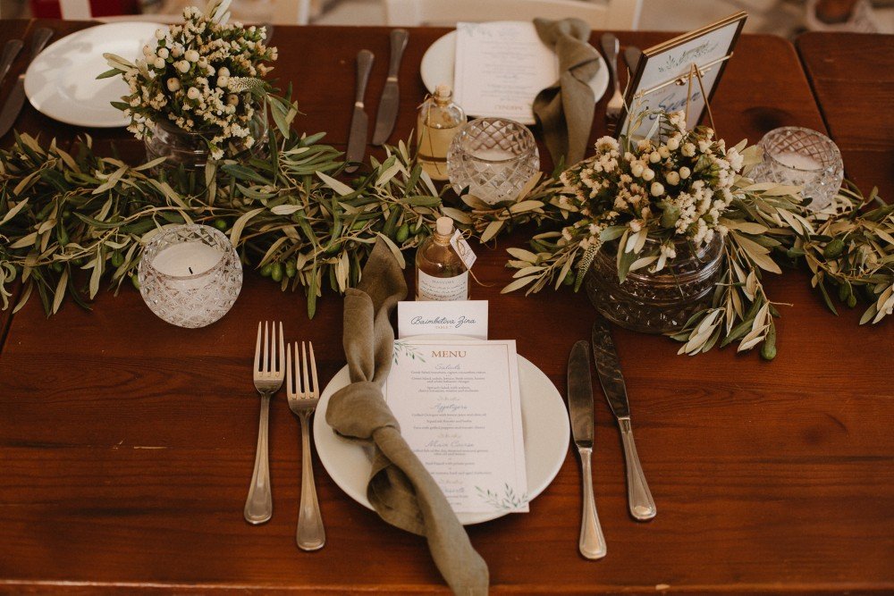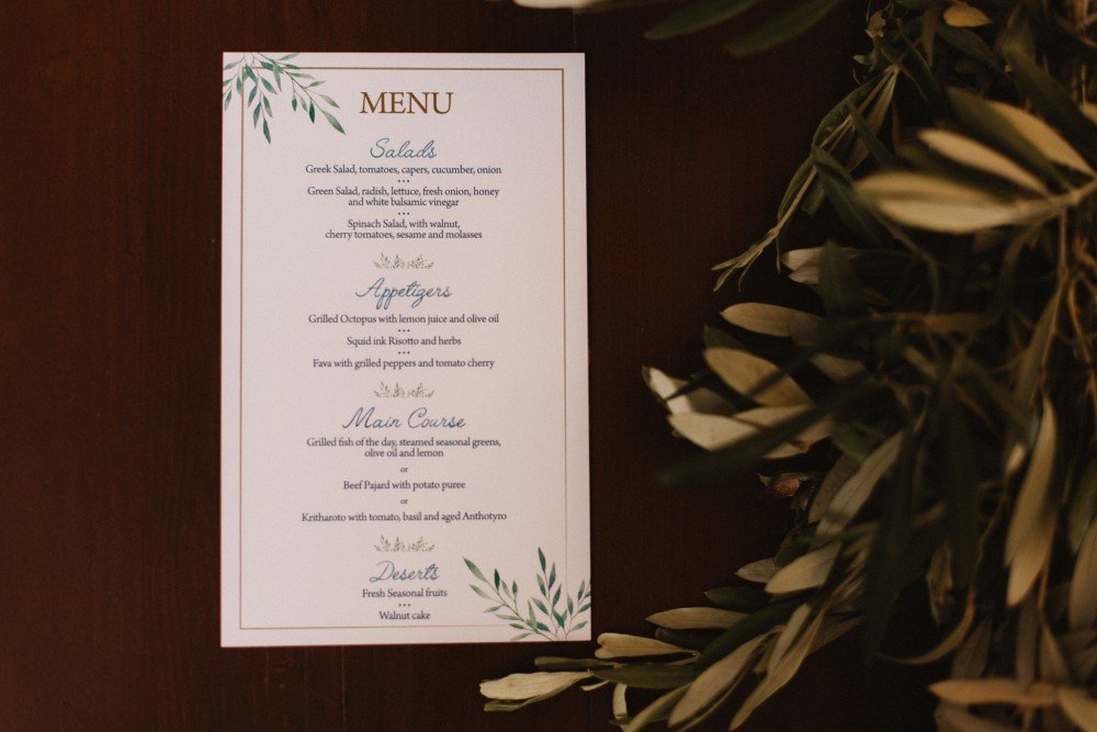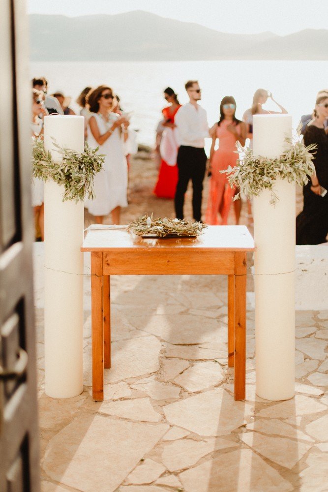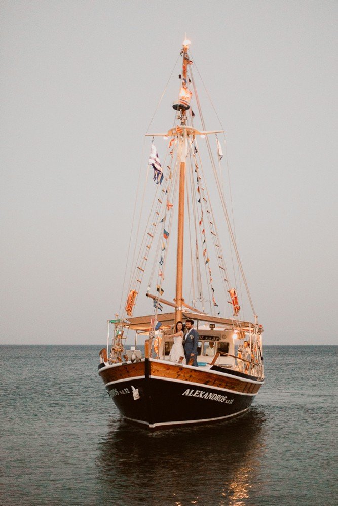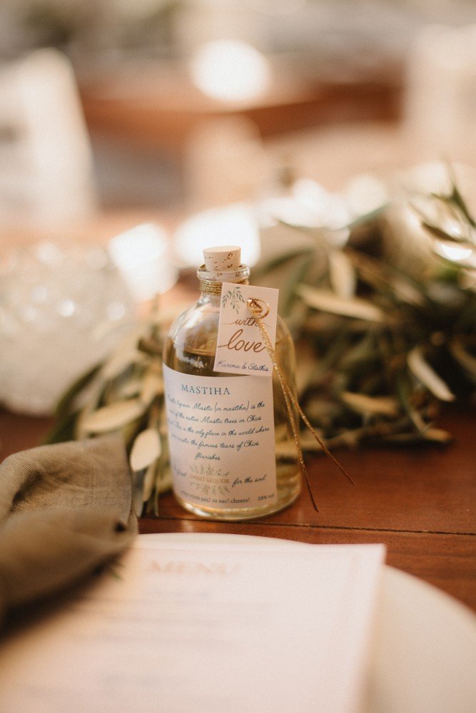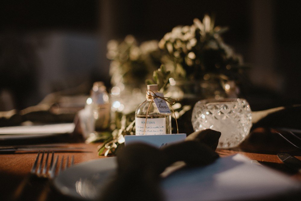 The whole wedding had a very Greek, yet sophisticated look and feel, with simple and practical Mastiha drinks as their favors. Green olive branches combined with crystals and golden/bras frames took the inspired the old luxury combined with new geometric designs. The best part of the trip must have been the exclusive boat ride and cozy dinner party after the ceremony.