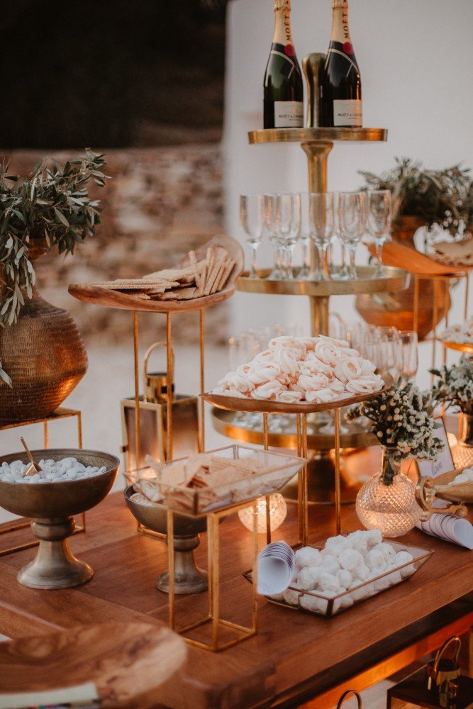 When you are getting married and have the gorgeous backdrop of Antiparos island as a canvas, half the work is done! There is nothing more mesmerizing than living the experience of the Greek climate during sunset accompanied by the magnificent sounds of traditional Greek instruments! Grounded yet glamorous – rich in Greek scents and aromas! The seaside restaurant, the gourmet marine dishes, the candle lit dinner, the barefoot dancing and the naturally beautiful olive leaves, were the keys to immerse guests in the sophisticated, relaxed philosophy that captivates the Greek summer ethereality! A once-in-a-lifetime night! “