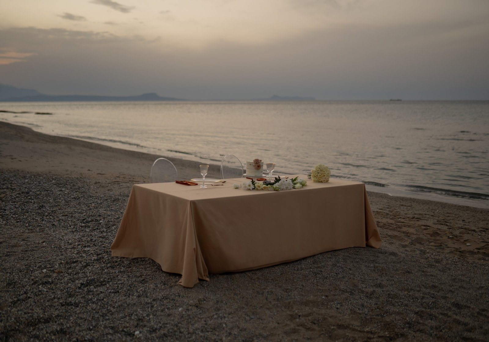 The inspiration behind this elopement was the story of two travelers from China. While exploring the sun-kissed coasts of Crete, Mei and Sho unexpectedly crossed paths on a quiet beach in Rethymno. That serendipitous meeting sparked a heartfelt bond that would one day bring them back to this very shore. Not just as travelers, but as soulmates ready to celebrate their union.