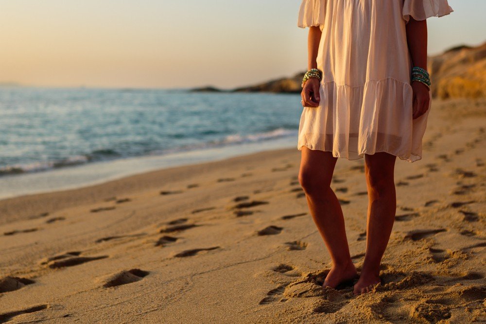 It was early in the morning, as we have recommended them – better light and less people on the beach. The sky was blue, the sea was calm, the silence was only broken when little taxi boats, were passing by, decorating the sea with their orange colors.