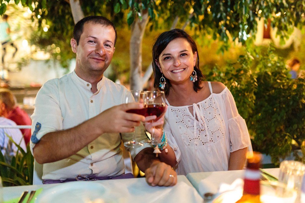 Because we had only one day in between our wedding ceremonies, we decided to celebrate together, along with some friends from the island, with a special dinner, at one of our favorite restaurants from Naxos, Flamingo Restaurant. The atmosphere was even more special with live Greek music, very good food and super friendly staff. our night ended with lots of wine and dancing, broken plates, a wedding dance, a very nice surprise cake and lots of beautiful memories.