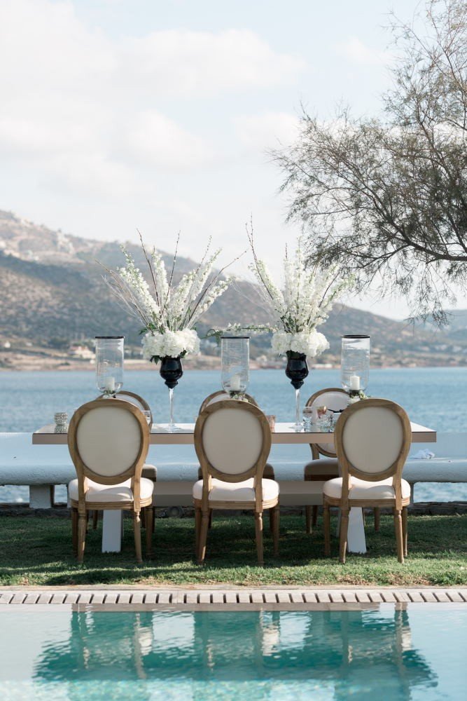 This Glamorous styled wedding, however, took place at Lagonissi. If you are seeking for private sanctuary, peaceful and dreamy elegance while being connected to the urban lifestyle, then this part of Athenian Riviera is perfect for you. Filled with beautiful places, luxury houses, and hotels, is one of the most lavish areas of greater Attica. It’s a perfect place to enjoy your jet-set glamorous wedding and honeymoon, like this one.