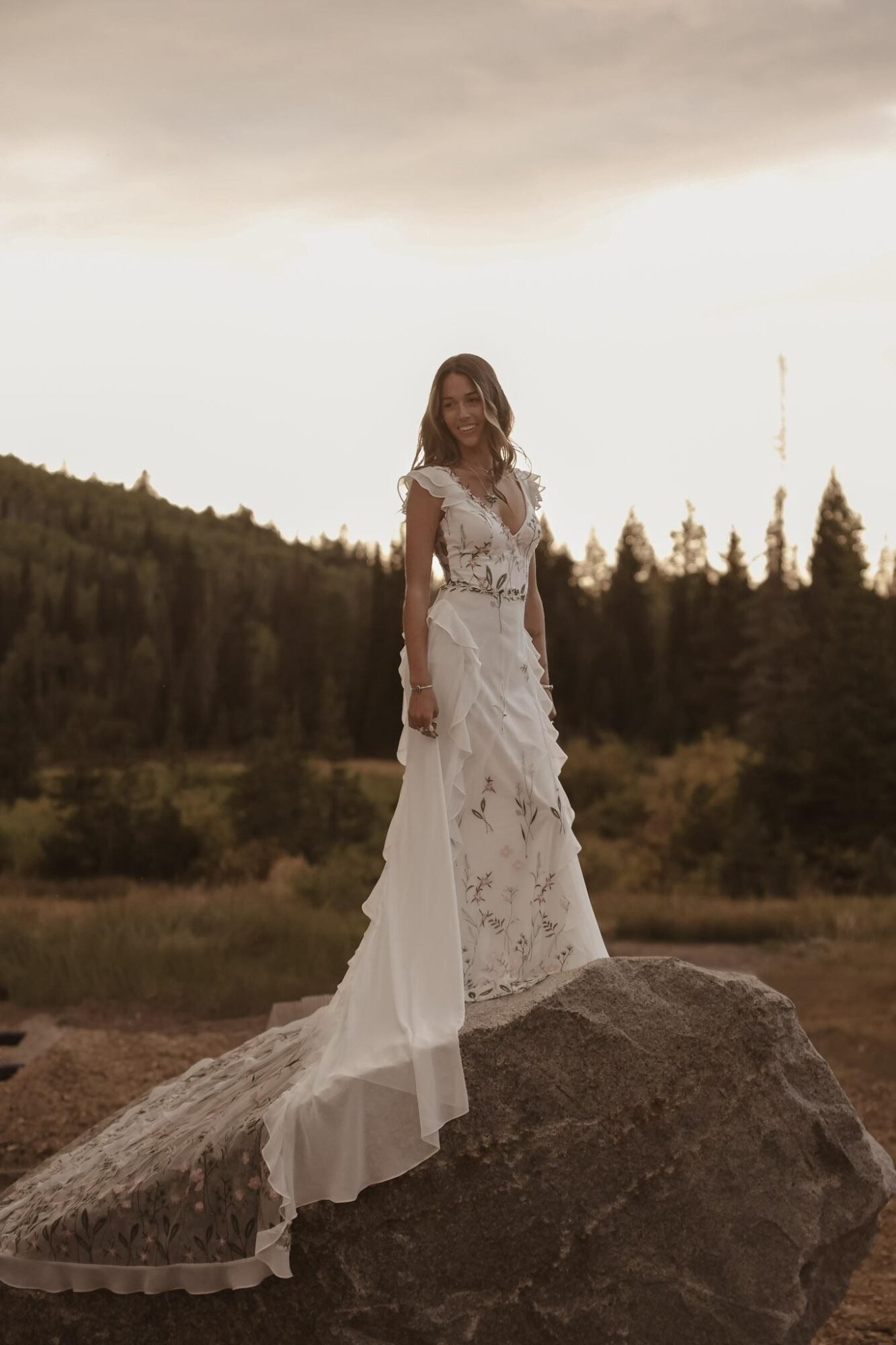This is why the whimsical wedding dress category has exploded. “Whimsical” is not a construction method or a silhouette. It is a feeling. The sense that a dress has personality, that it was designed with a specific point of view rather than assembled from a checklist of bridal conventions.